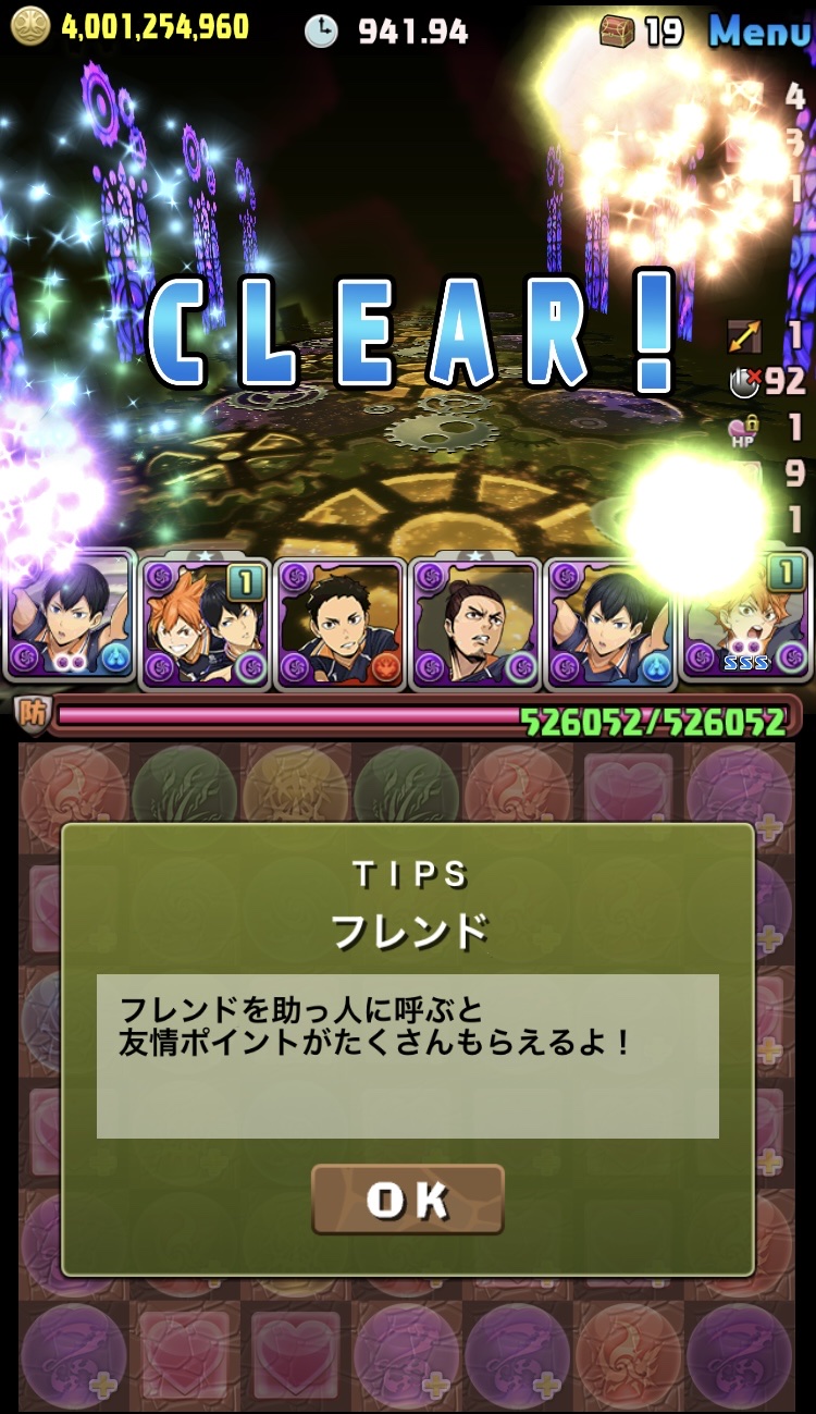 百式難民によるF91編成で神秘チャレンジクリアしたかったけど、敵の硬さに対して火力不足を感じて烏野編成で挑みました。