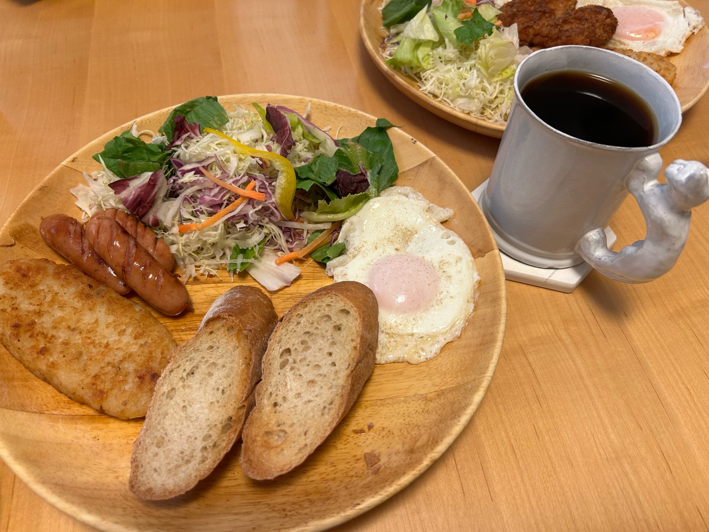 休日のご飯は朝昼兼用でいつもこんな感じです*。*゚カロリー高めのアメリカ人みたいに食べてます*(w´∀`w)*゚