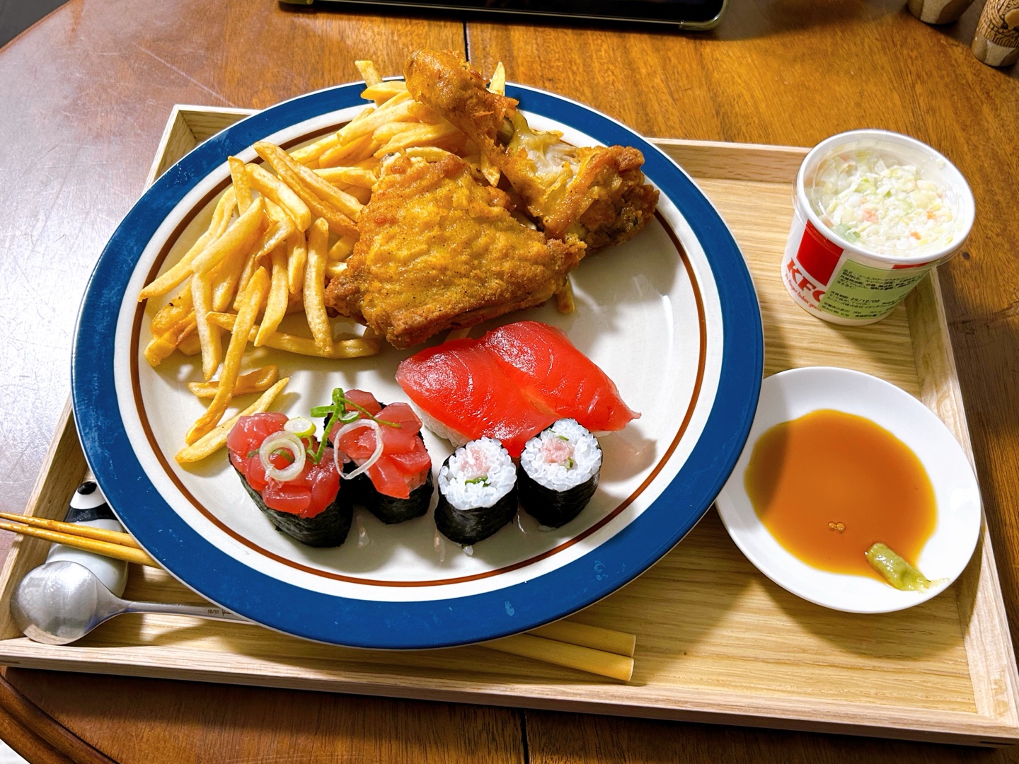 ケンタのチキンに、マックのポテトとお寿司 笑
