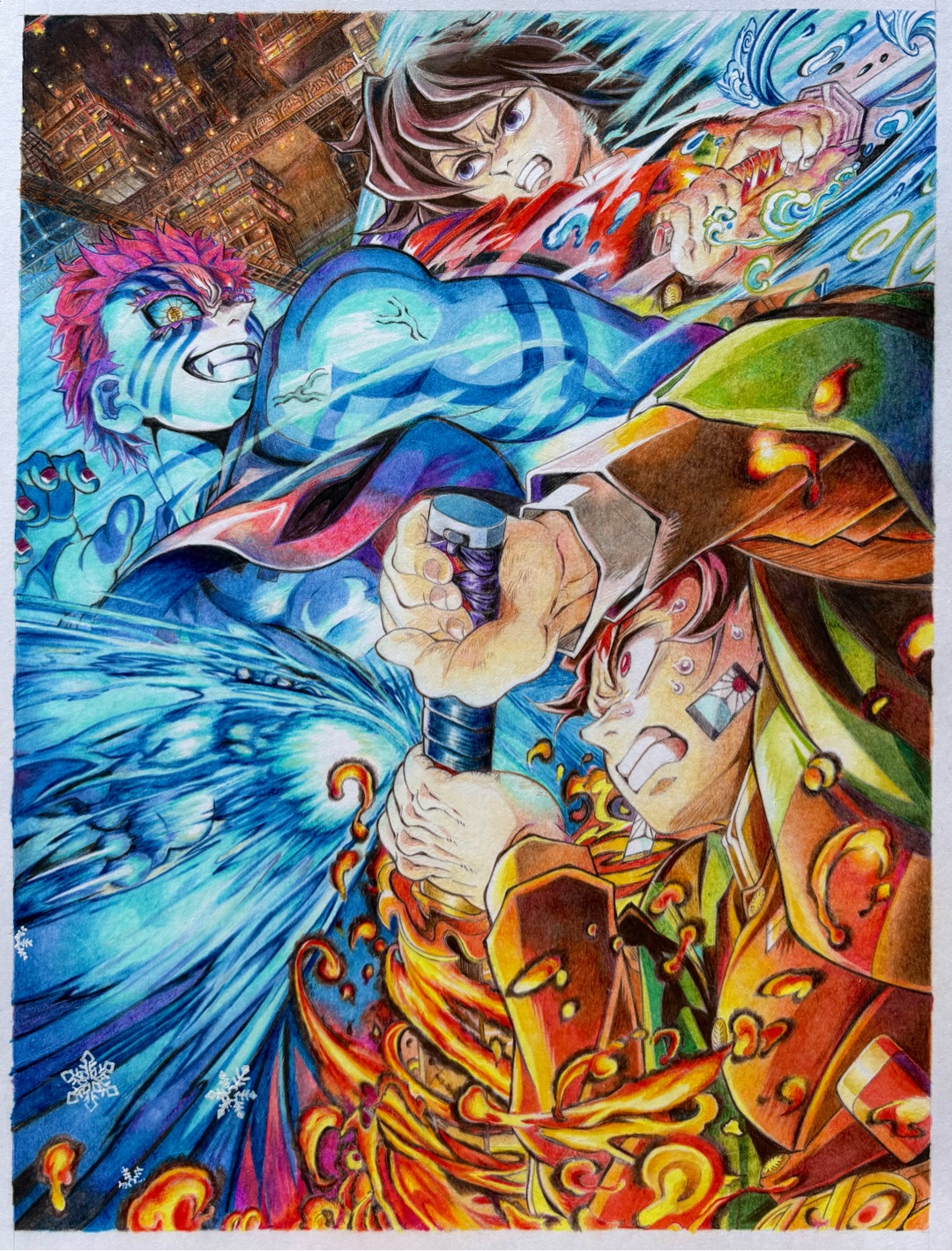 猗窩座のエフェクトに恋雪❄️を散りばめてみました。あと、冨岡さんのお顔を自分好みに。