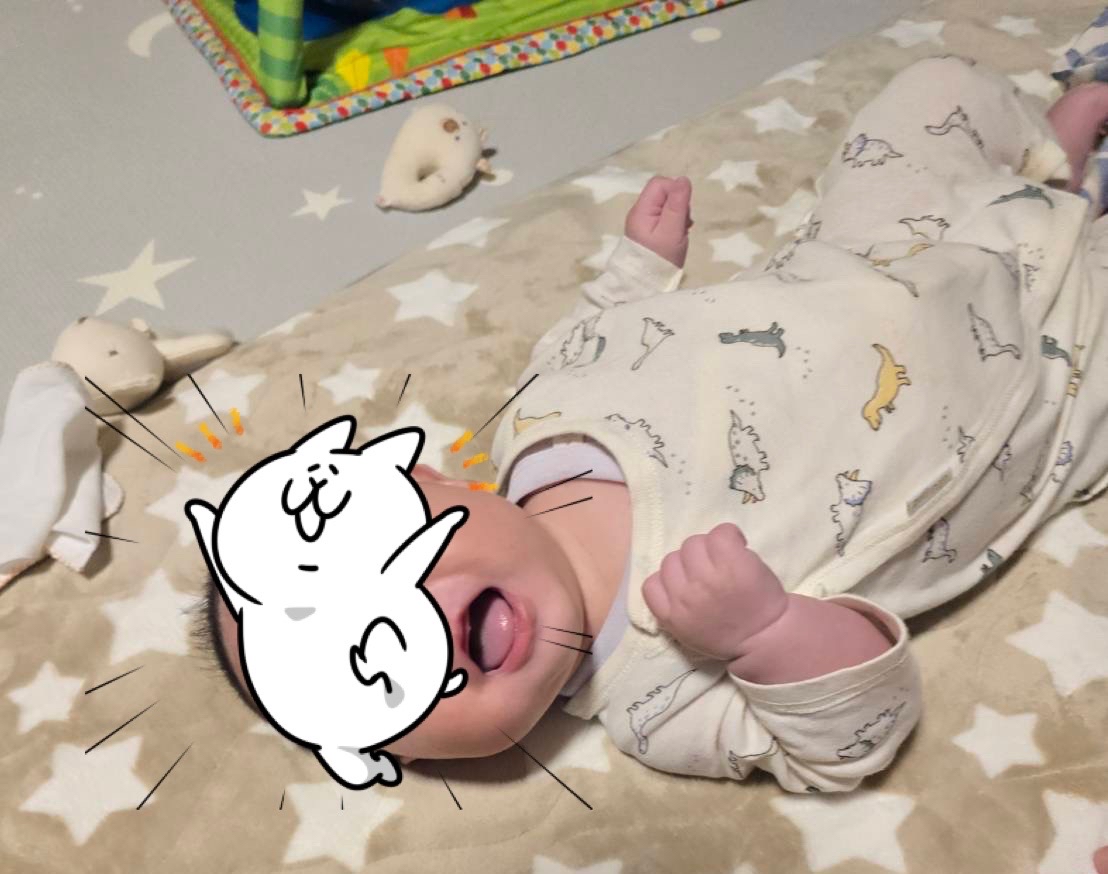 最近は、まだ首もすわってないのに寝返ろうとして泣く😂笑