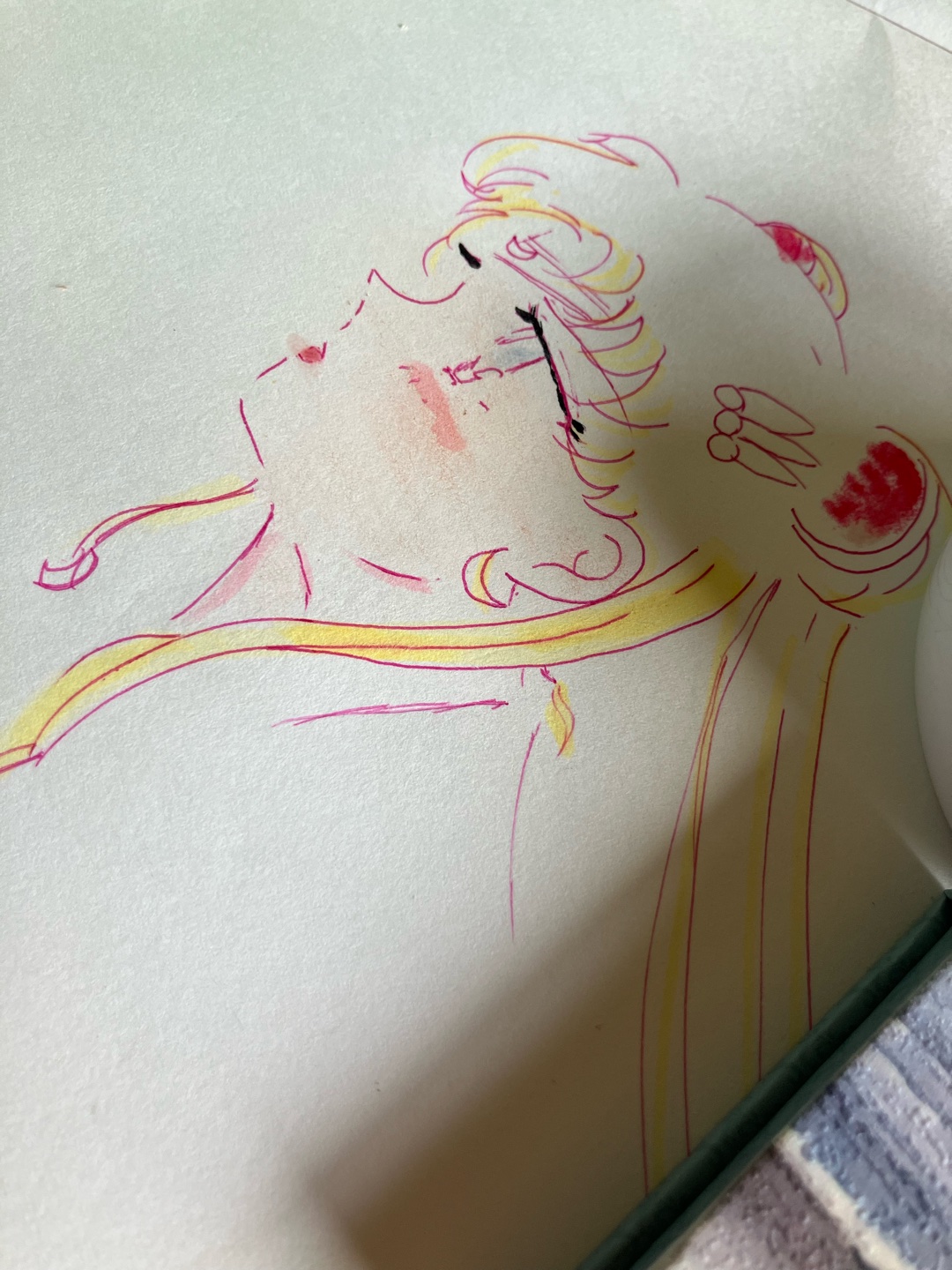 赤ボールペンと化粧品で塗りました💄