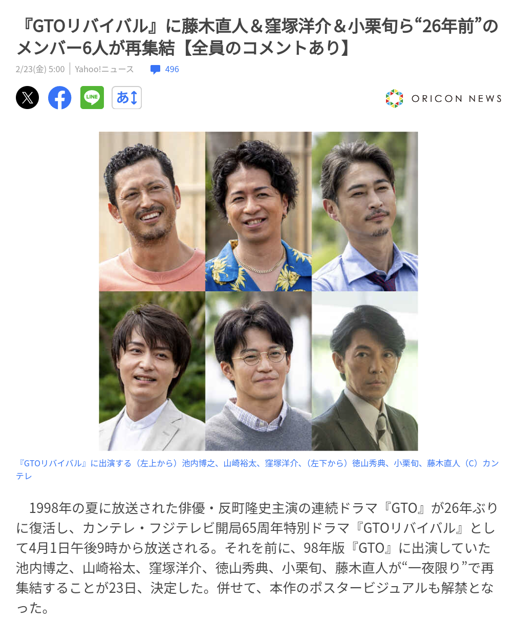 昨日TVerで『GTOリバイバル』を観ました[大笑い]