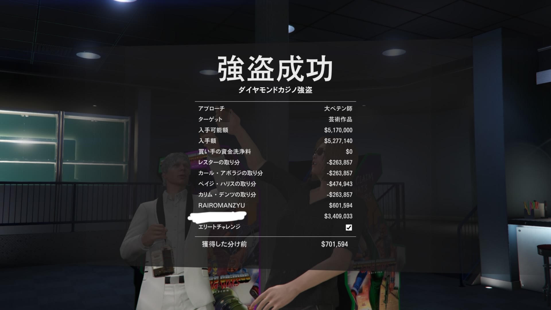 GTAオンラインのカリヨペコ強盗初クリアした✊