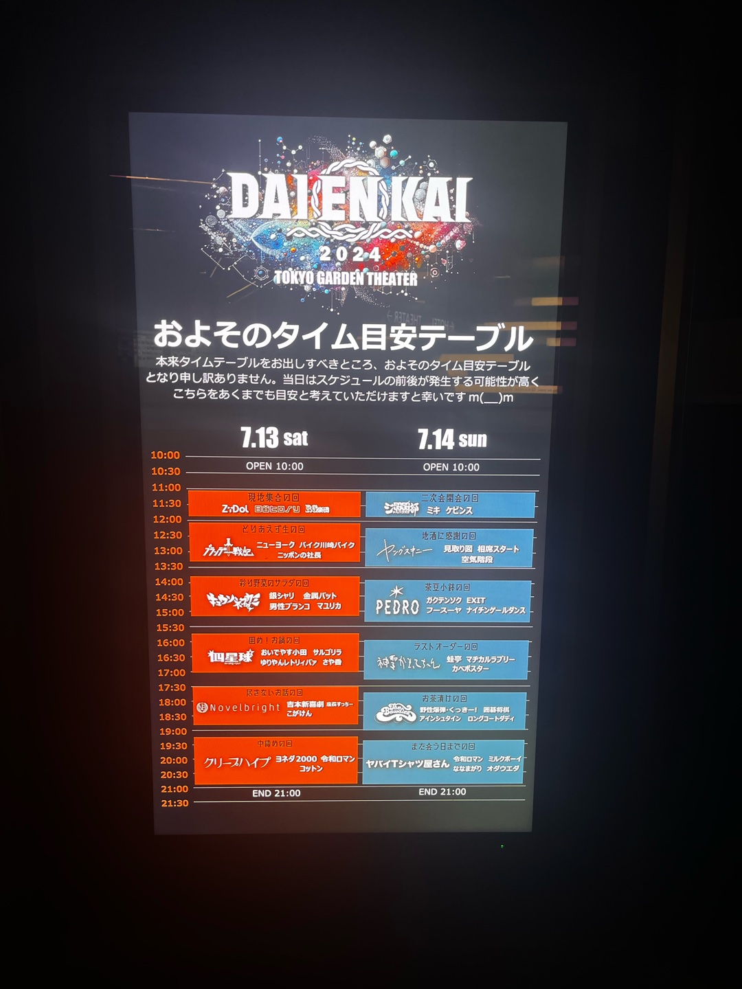 岡崎体育終わったとこ。マジカルラブリーとのコラボ漫才爆笑だった。#DAIENKAI