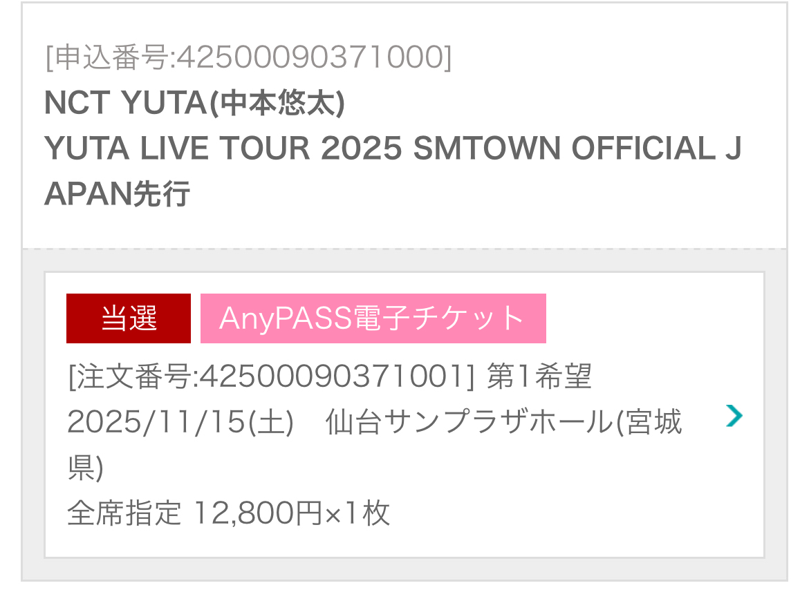 YUTAのソロコン当たったー!⸜(*ˊᗜˋ*)⸝ワーイ