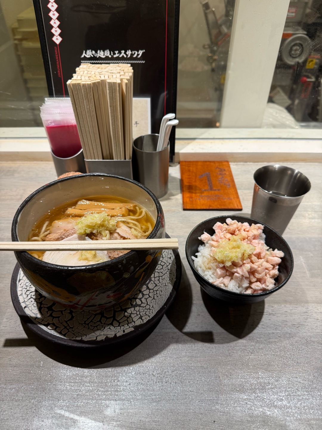 今日は池袋で模試の後に人類皆麺類とエスサワダのコラボのラーメン屋へ。