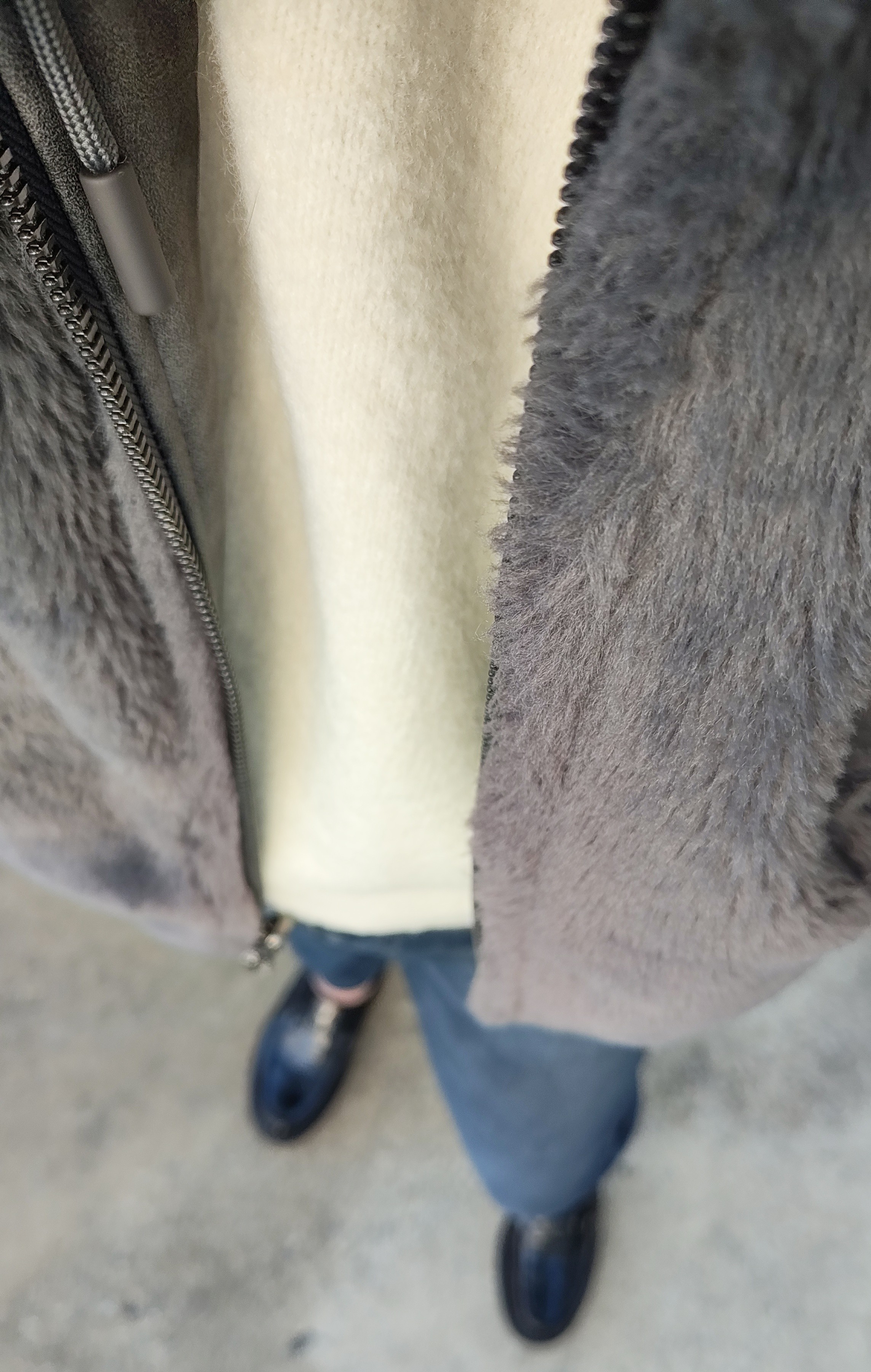 このリバーシブルいまだに家出る時にレザー側かモコモコ側で迷う。なんだかモコモコを内側にしたほうが体感あったかいんだ。ほんといつも同じ格好 #だからなに