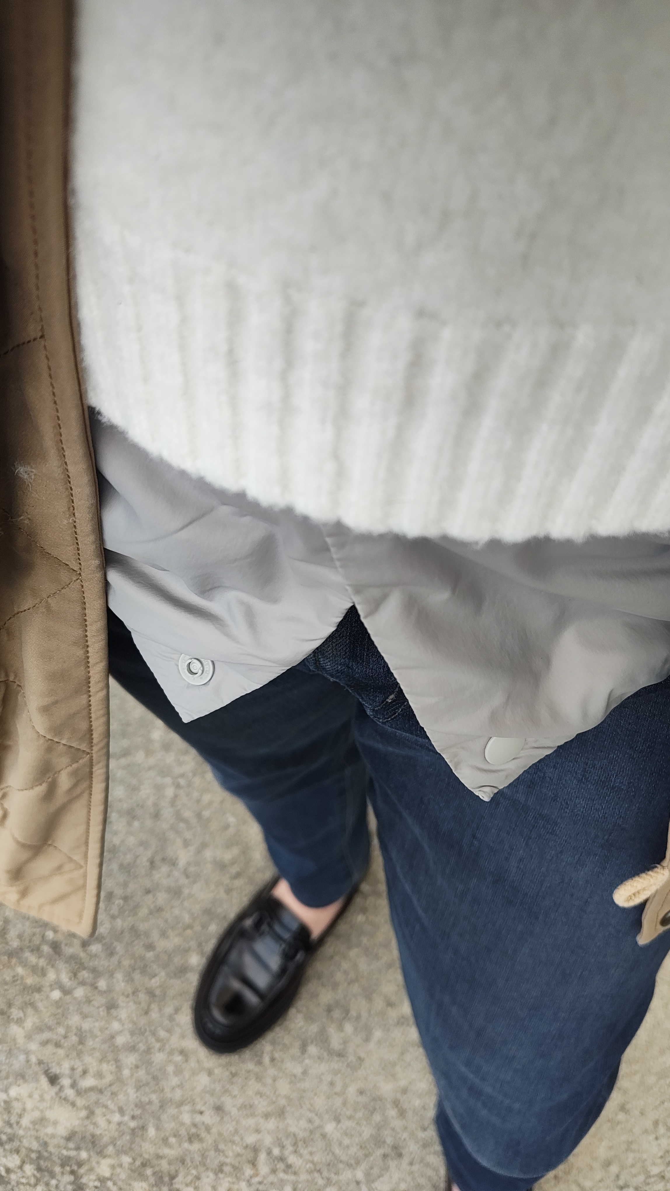 写真のためにわざとこうして撮ったけど、昨年秋口に購入した無印の軽量ダウンが中に着込めて計算通りで嬉しい。