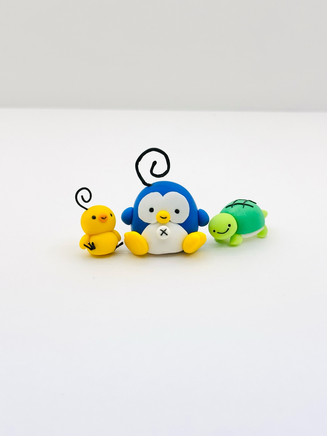 オリジナルキャラのくるくるぺんぺんを粘土フィギュアにしてみました🐧🐥🐢