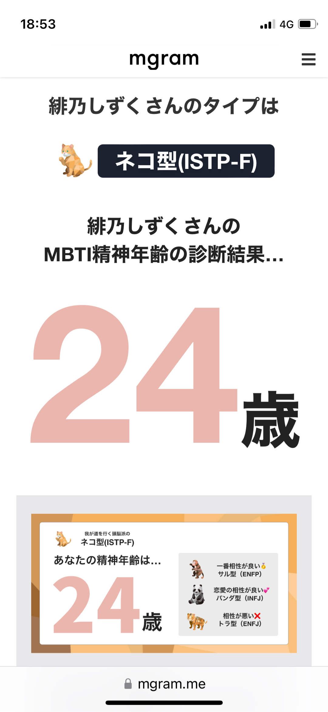 エムグラム診断で、精神年齢がわかるらしく、やってみたら、実年齢よりひと回り若い🌱🤣🤣🤣