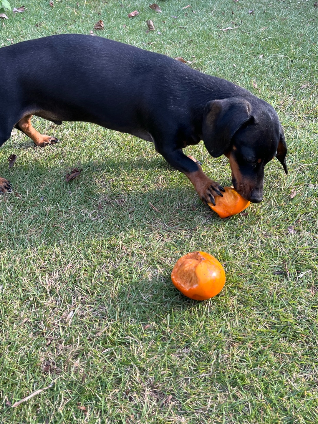 庭の柿の木から落ちた柿を食べています♡