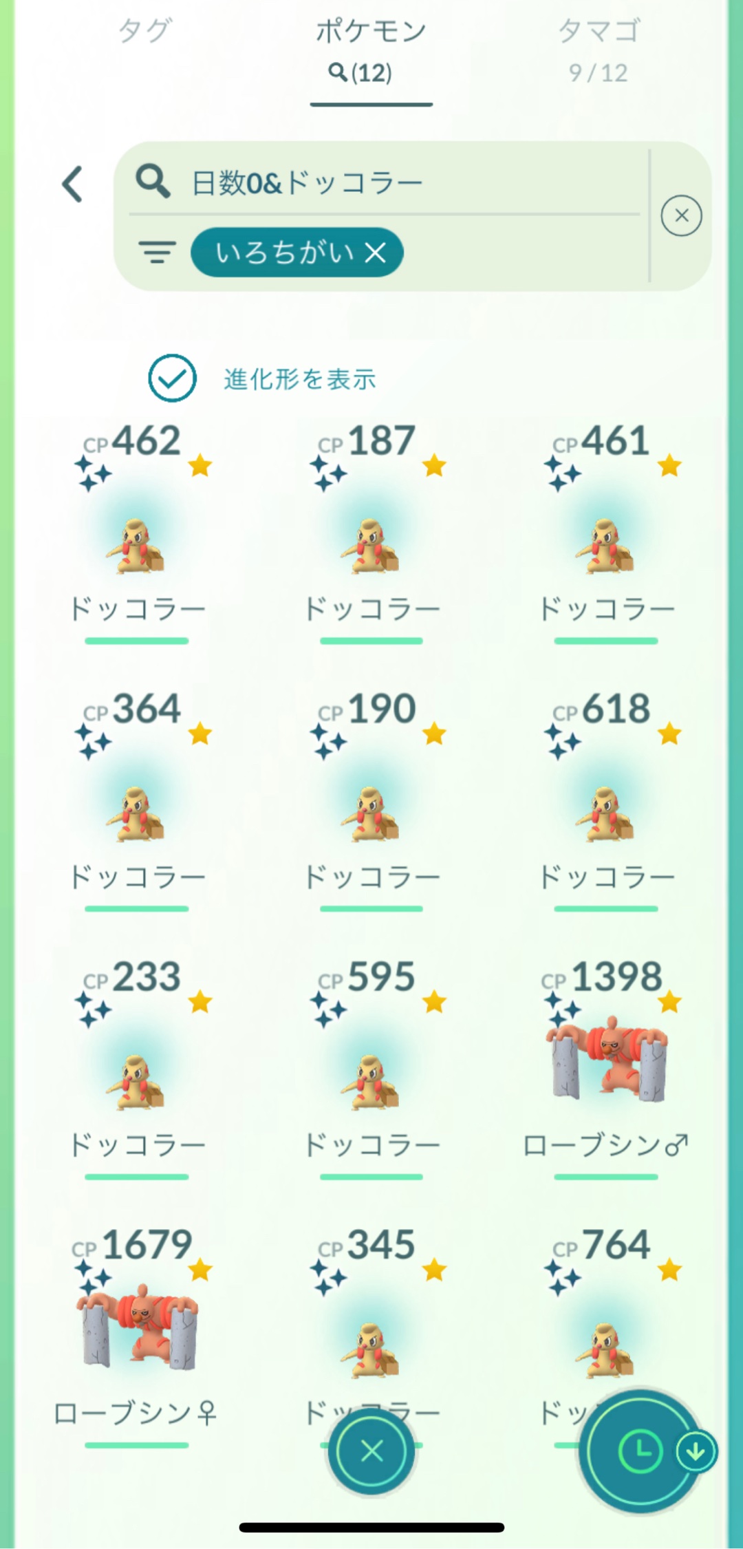 ドッコラーの色違いは10体ほど捕まえました