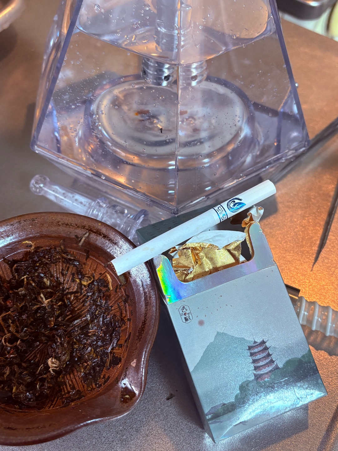茶のタバコと茶のシーシャ