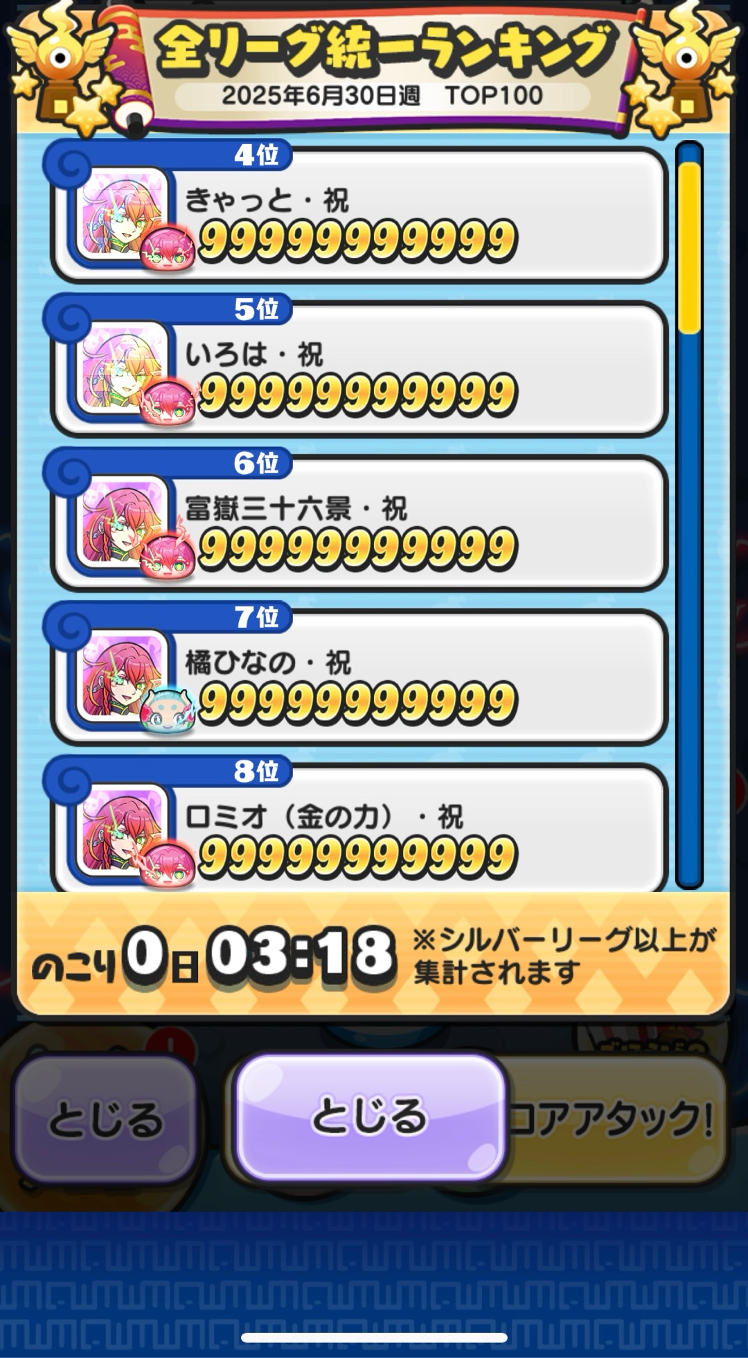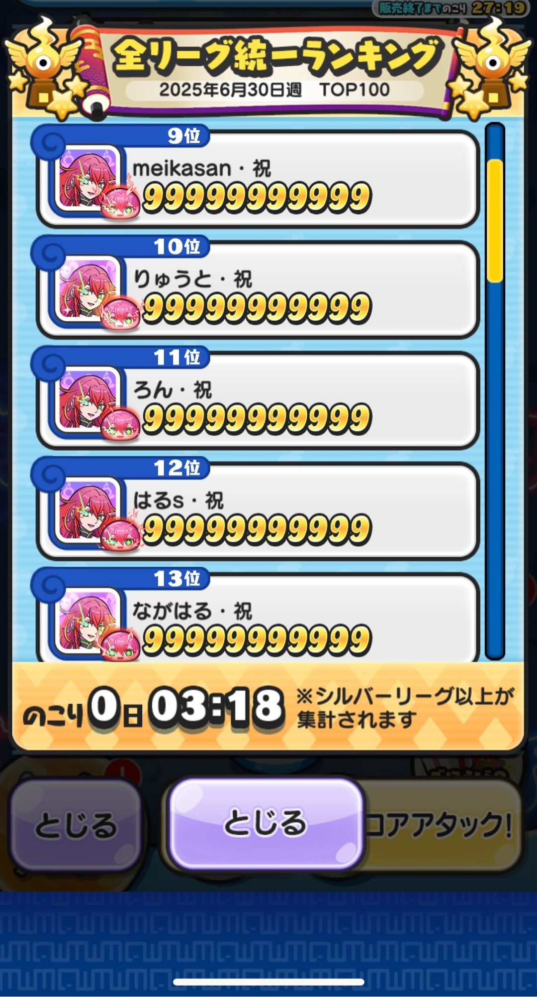 スコアタポイント100万まであと506週、30万まであと40週、スコアタポイント1000万まであと6506週。確実に一人一人淘汰していくだけ。#妖怪ウォッチぷにぷに #ぷにぷに #スコアタ #