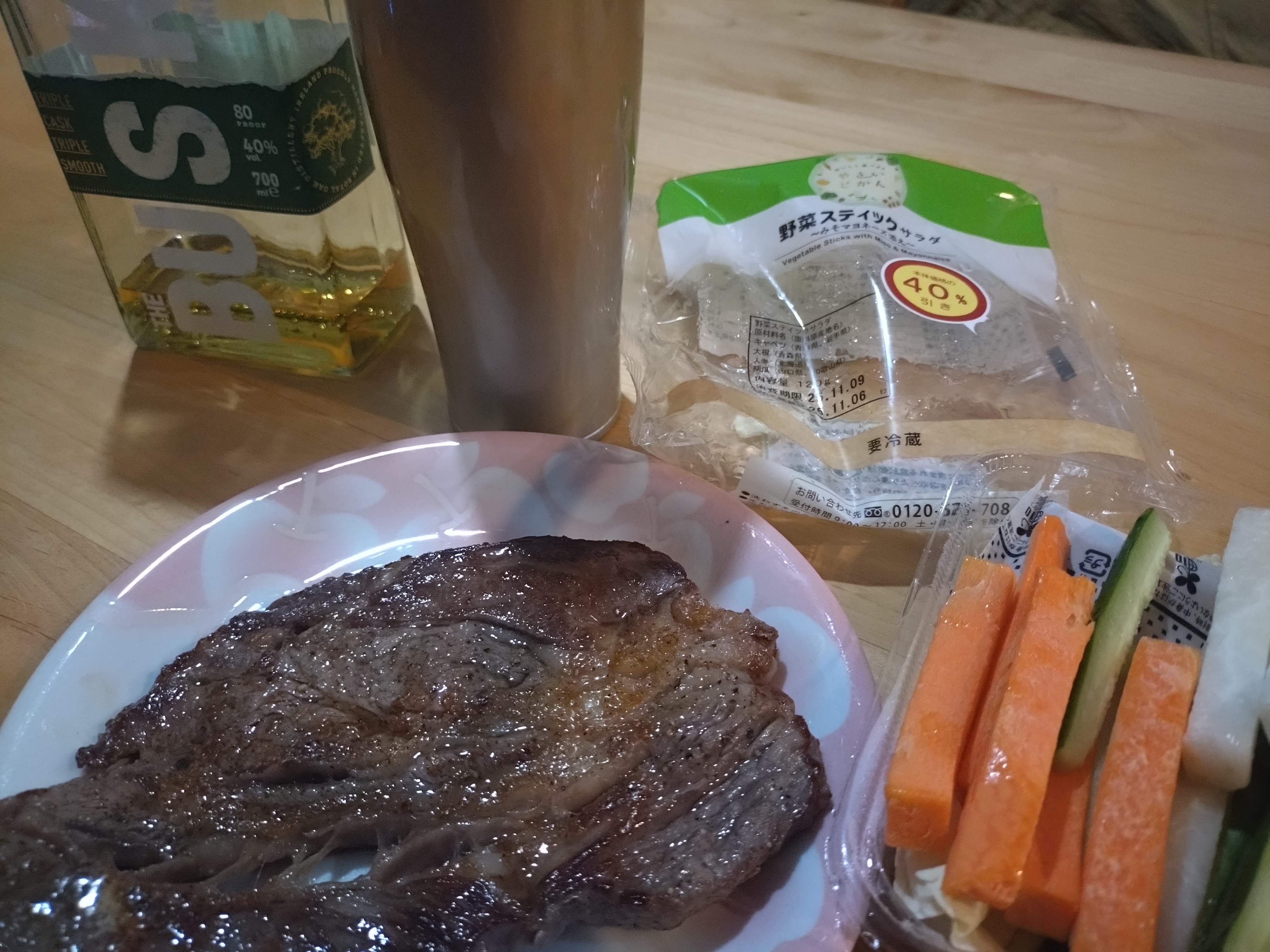 #ステーキ #野菜スティック #BUSKER #ハイボール