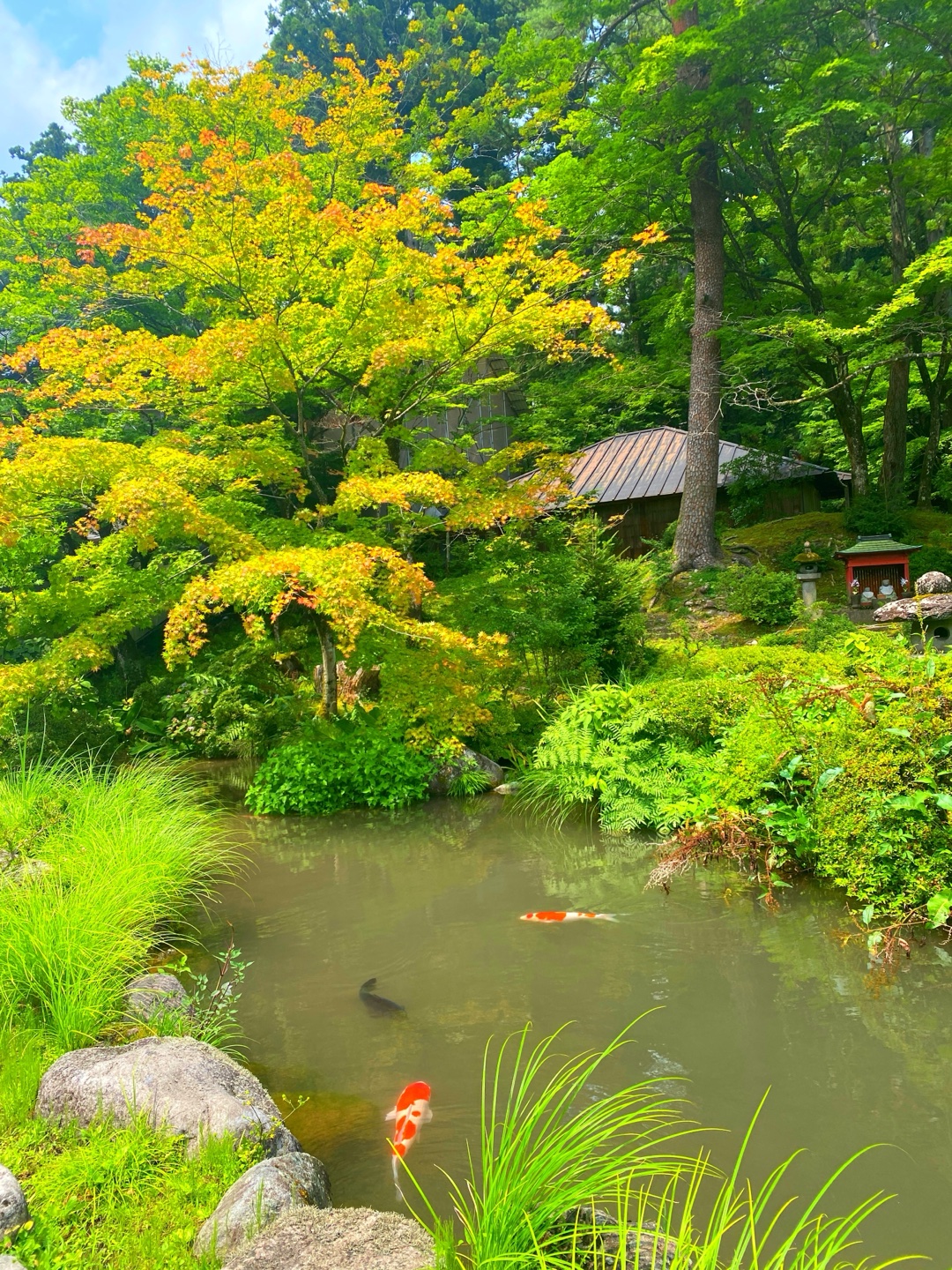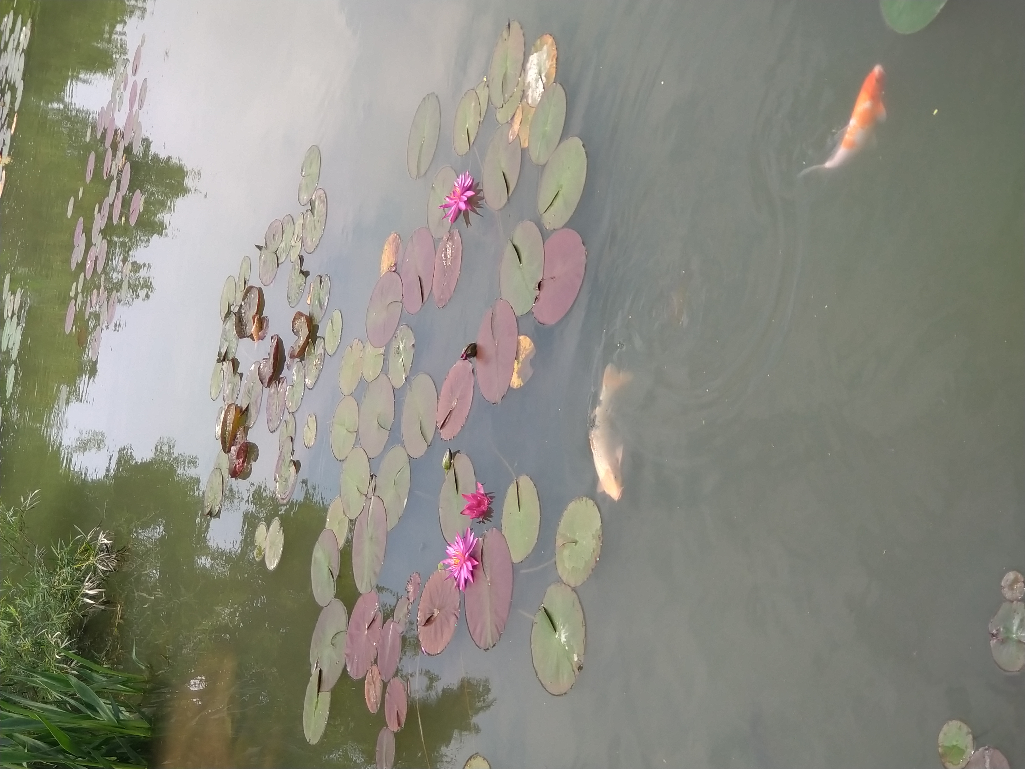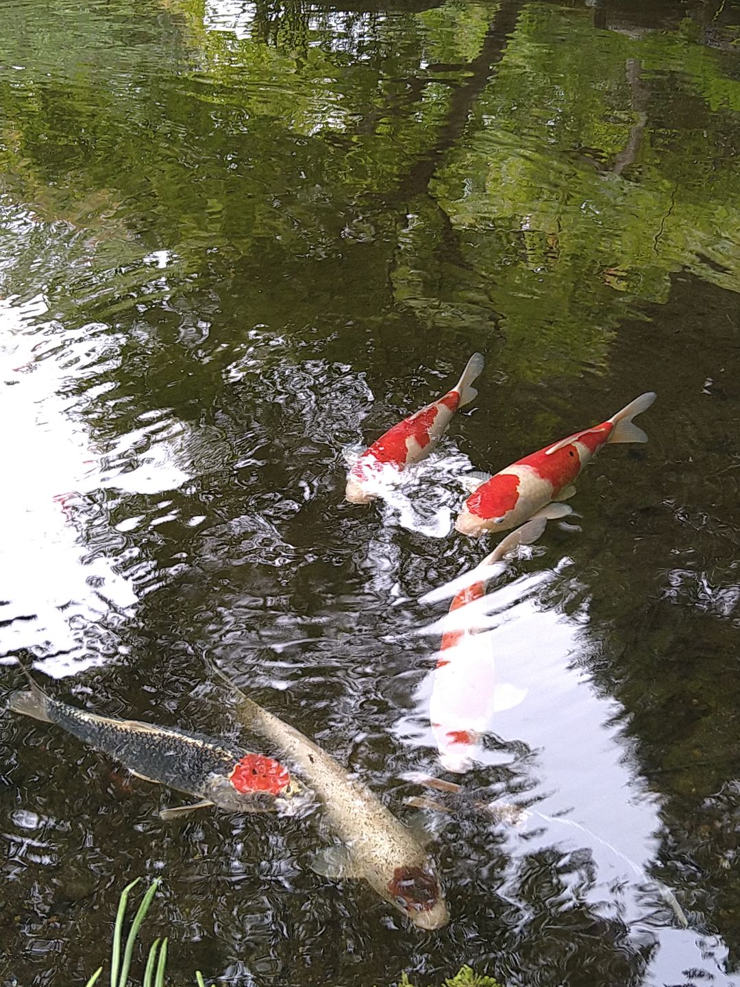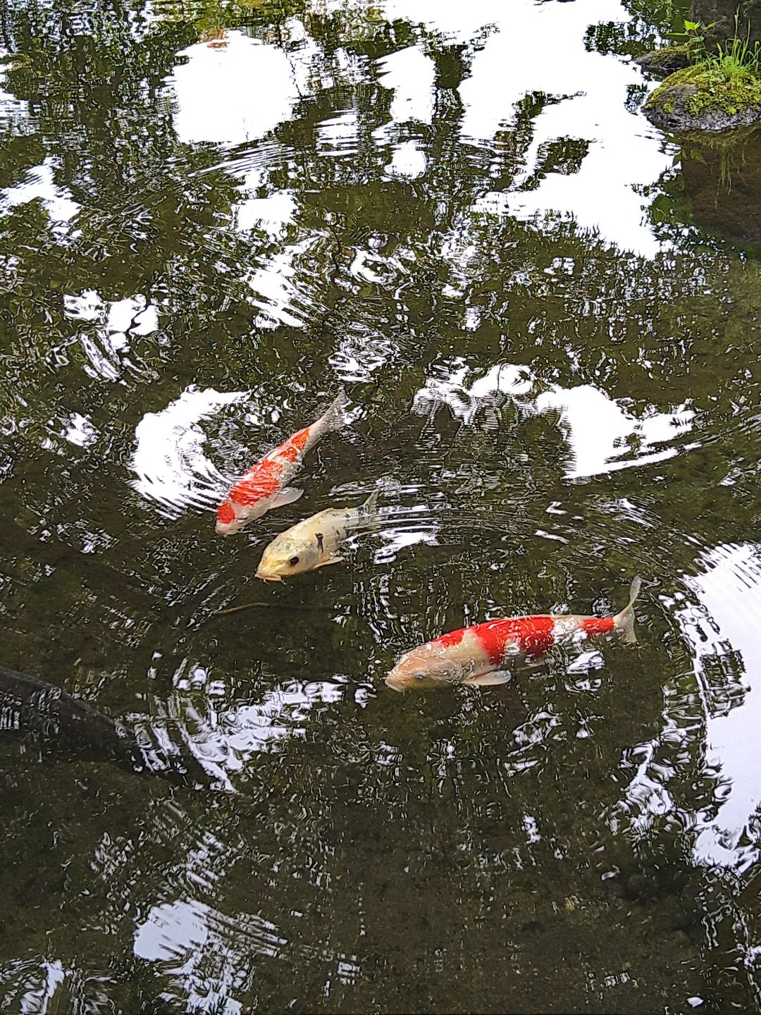 分かりづらいですが、右手前に鯉が2匹います。