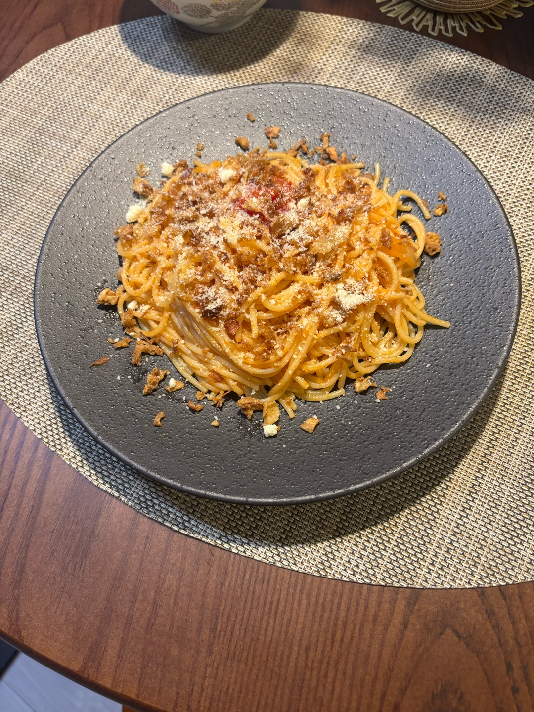 昨日作っていたトマトソースを使った手作りミートソースでパスタをつくりました!