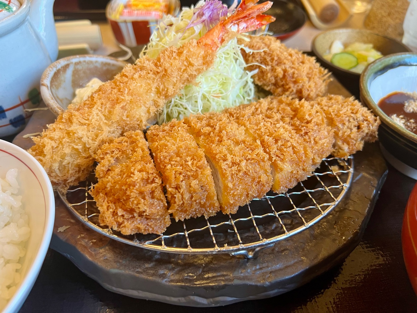 ついでに近所の和食屋さんでトンカツ定食をご馳走に…😋