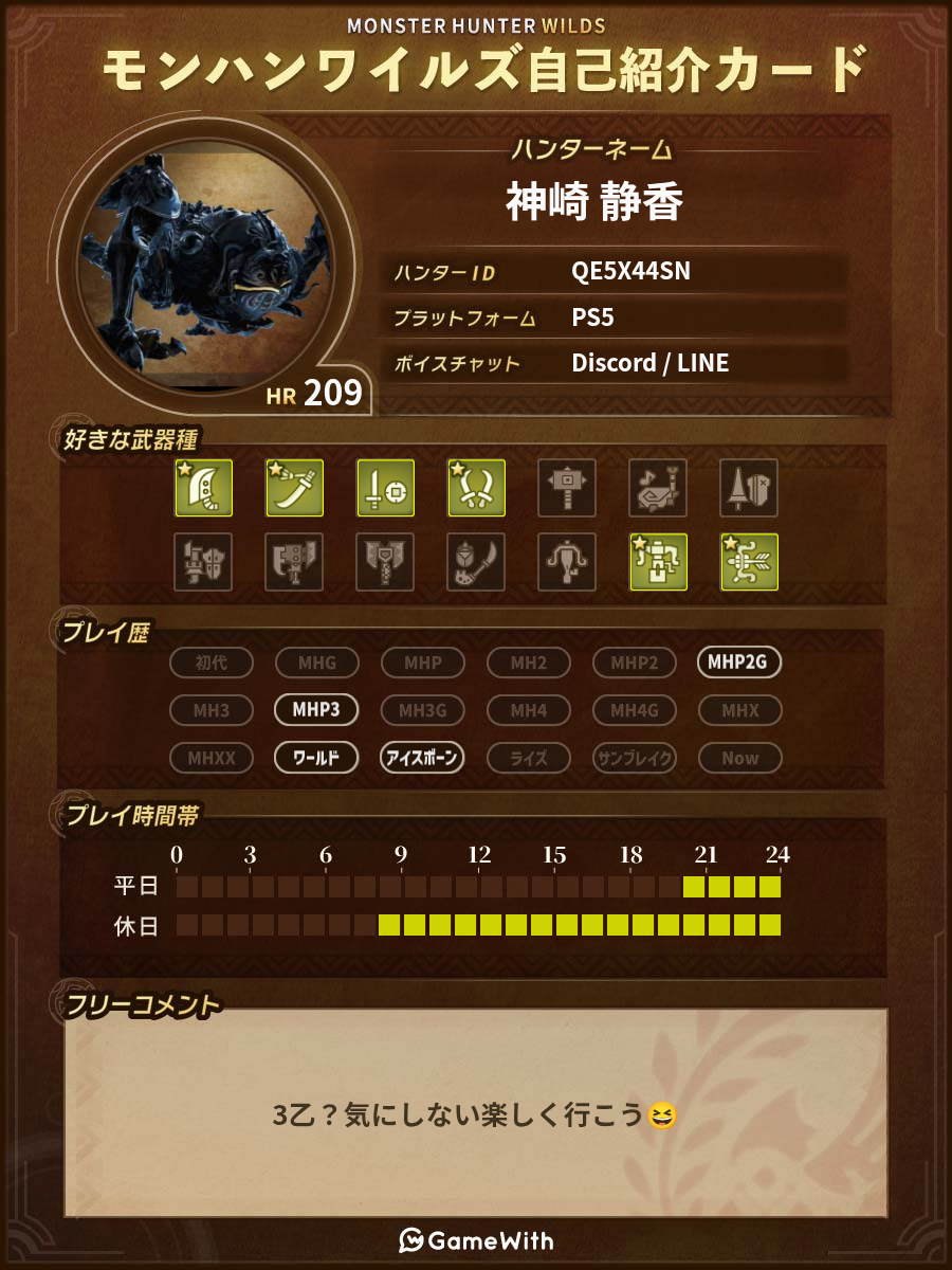 #MHWilds自己紹介カード