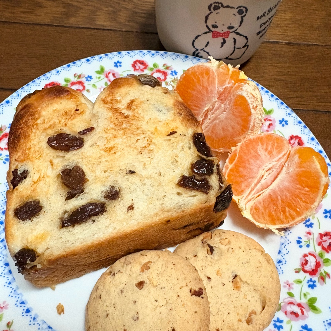 最近食べた レーズン食パン+みかん🍊クッキー🍪