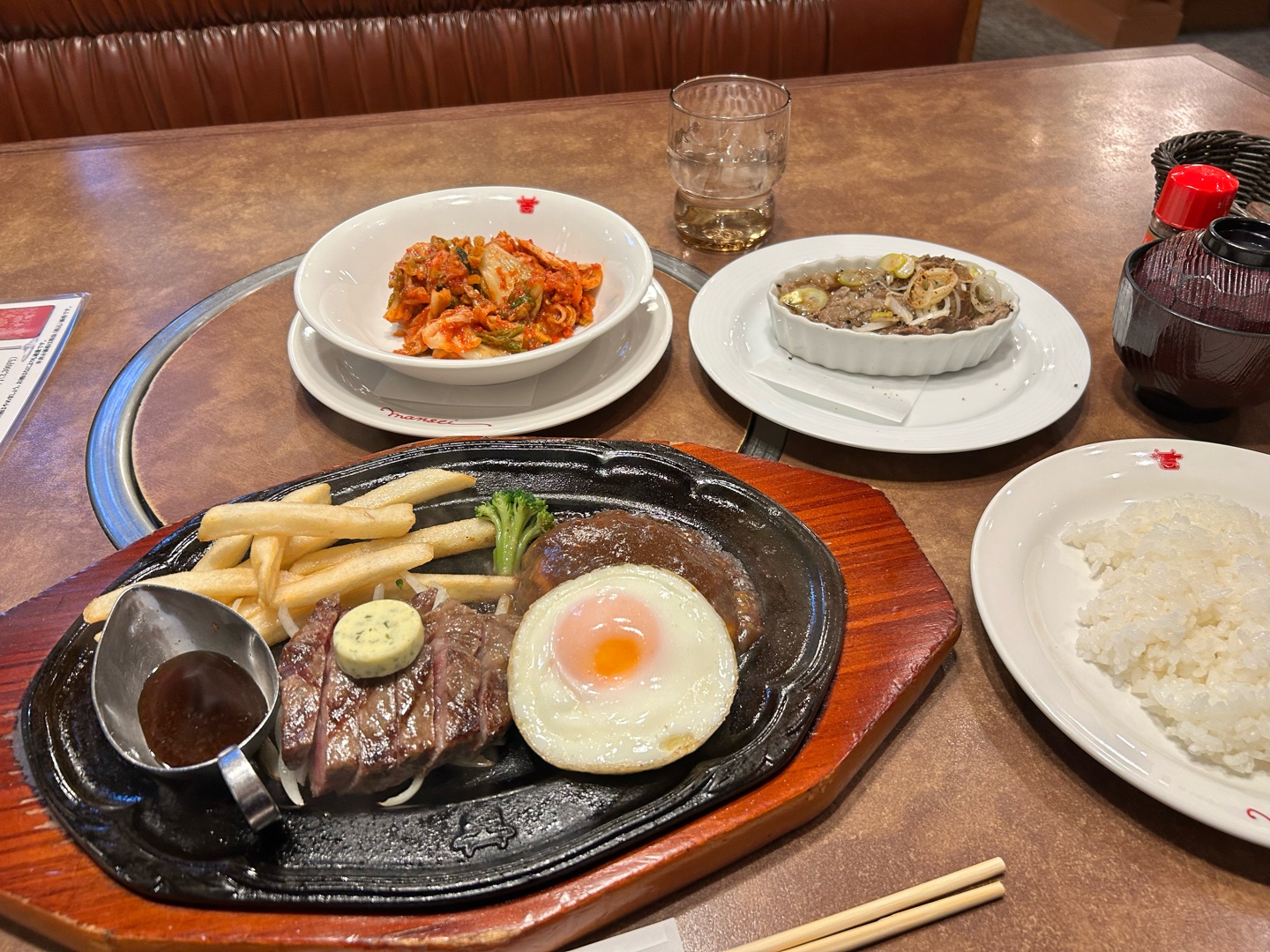実家に帰ってきているので、叔母と肉の万世でランチ。あらびきハンバーグランチの、ハンバーグ増量ができるようになっていて感激🤩