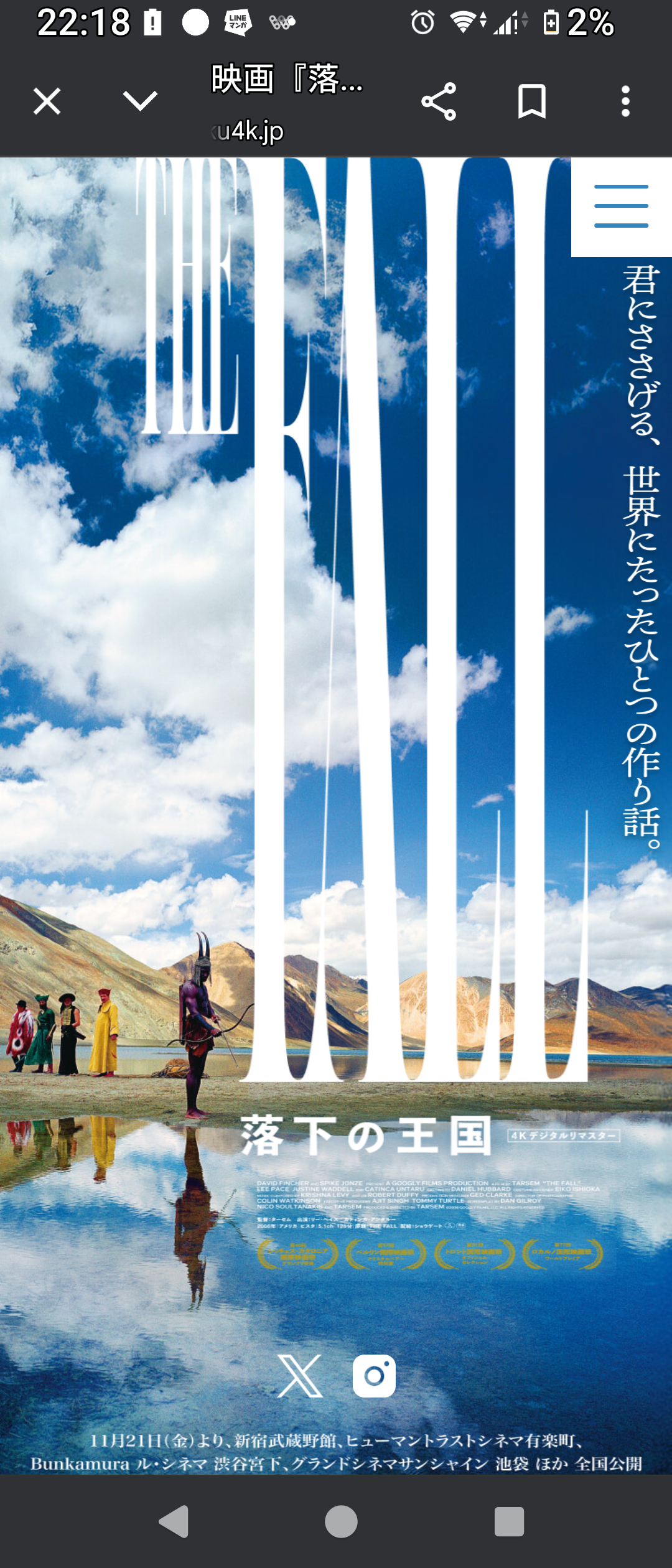 でも30日までの『落下の王国』をどうしてももう一度観たくて…二次会は断って映画館へ