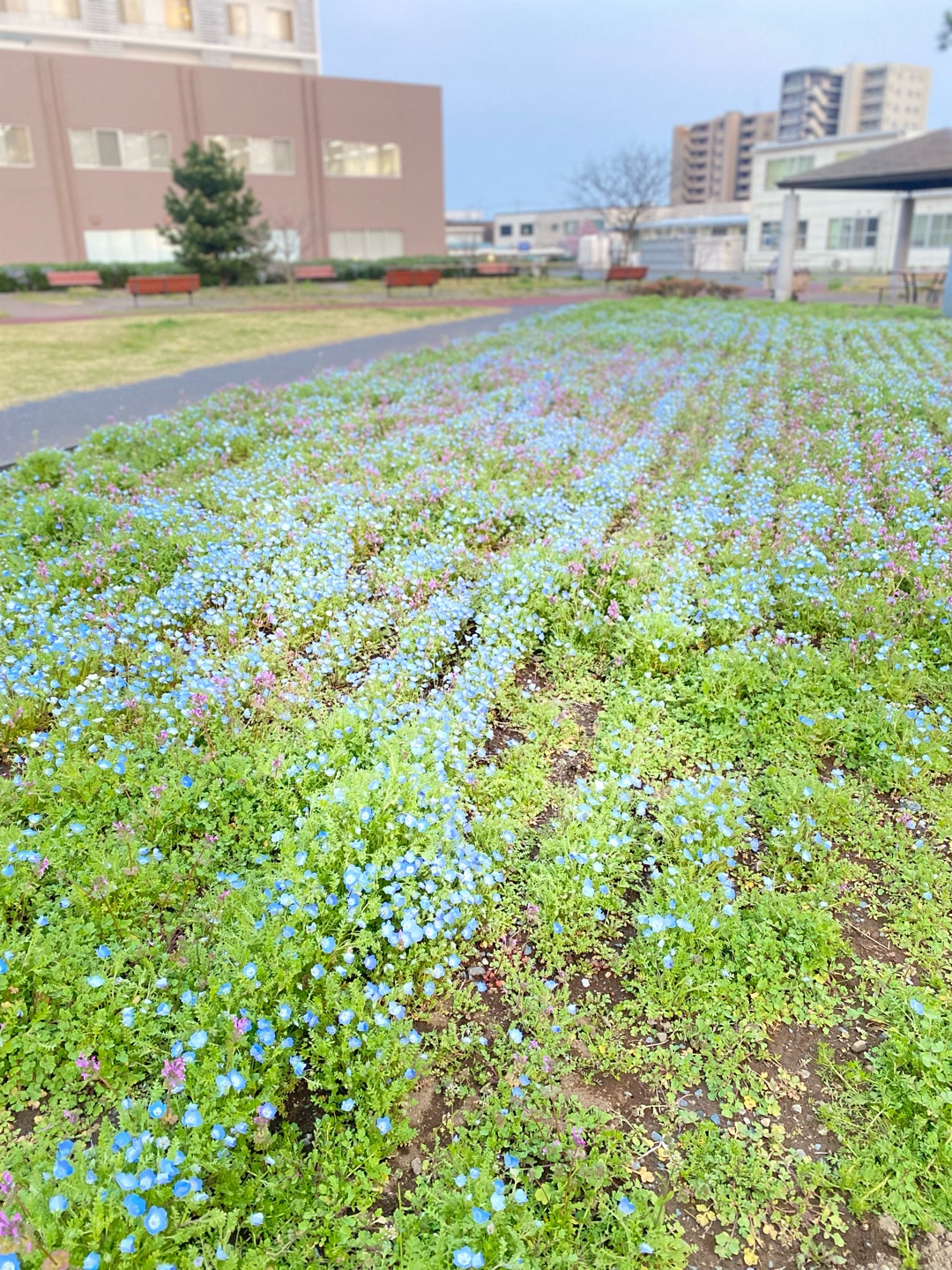 ここは日本で1番沢山のネモフィラが植えてあるとか。閉園後に係の方が植えなおしたり、かれてるのを取ったりとお手入れしてくれてるとか。
