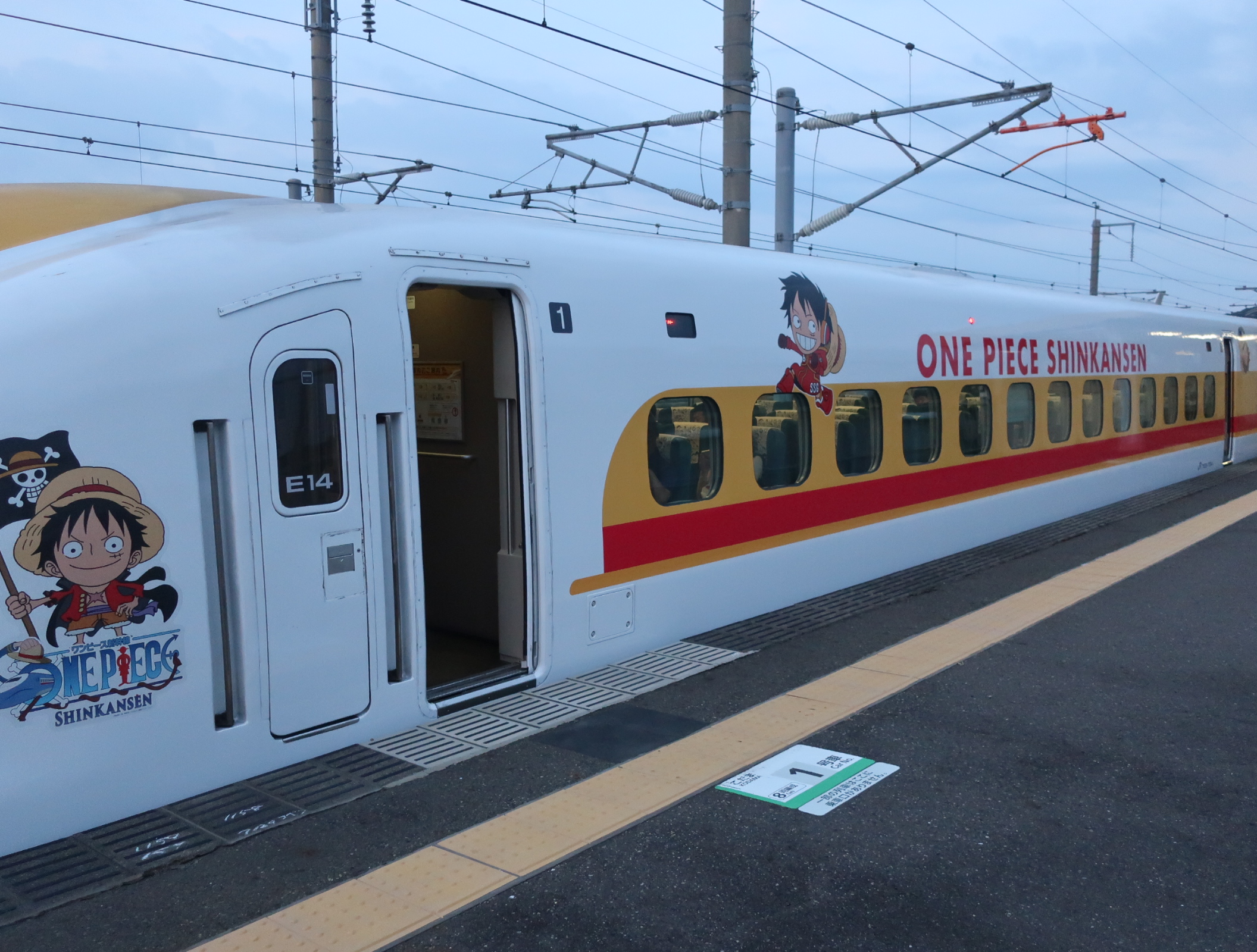 ワンピース新幹線モンキーDルフィ号(700系新幹線E14編成)。
