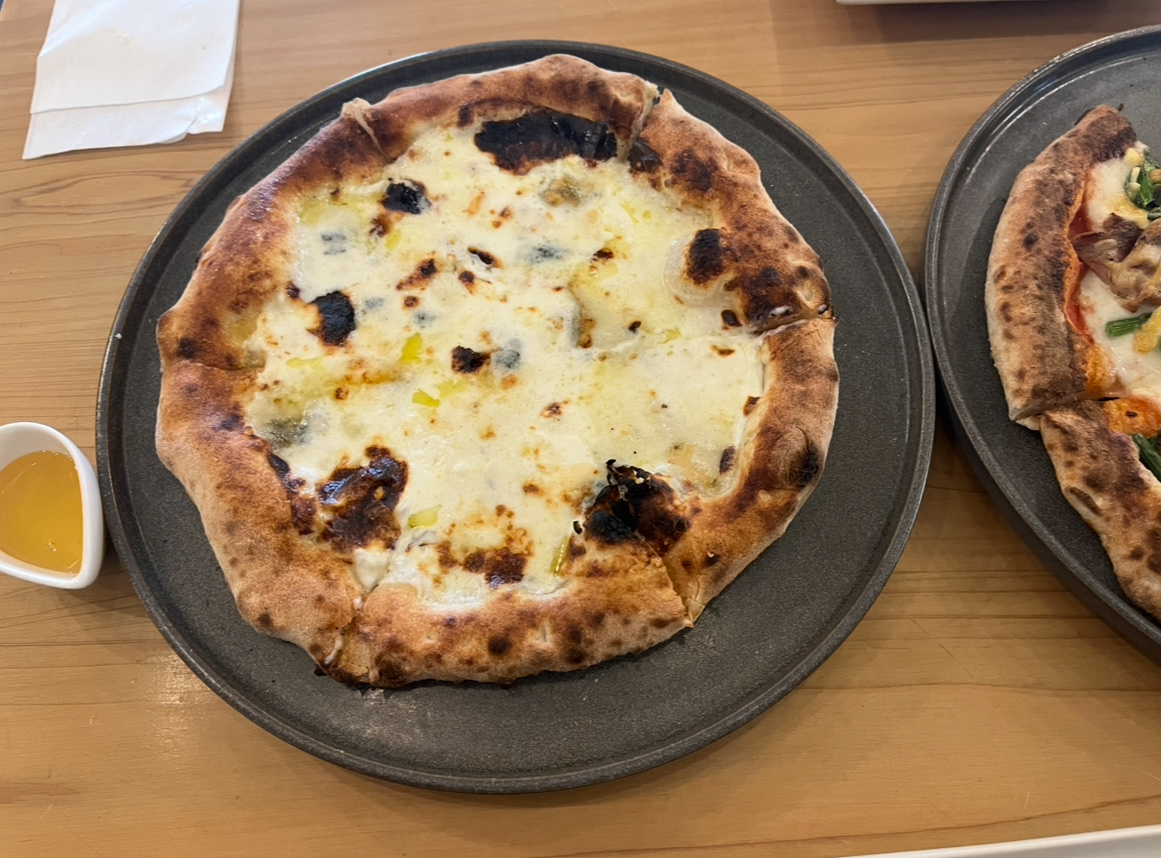 ゴルゴンゾーラのピザはちみつかけるー =めちゃおいしい #歓迎会 #梅酒サワー