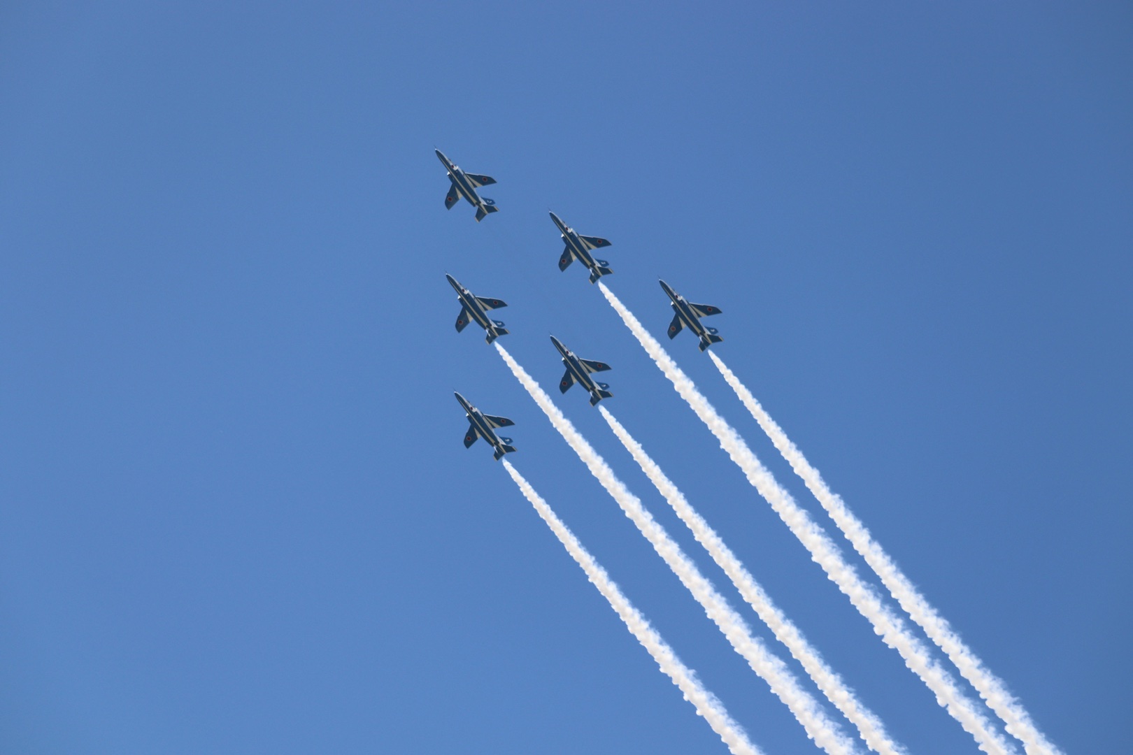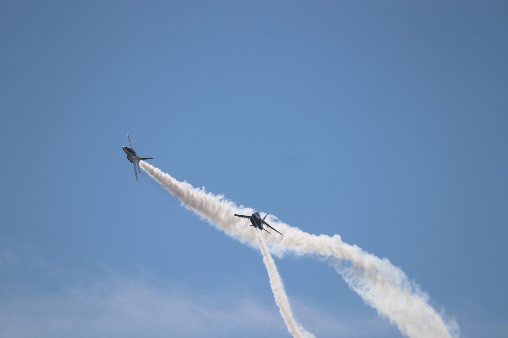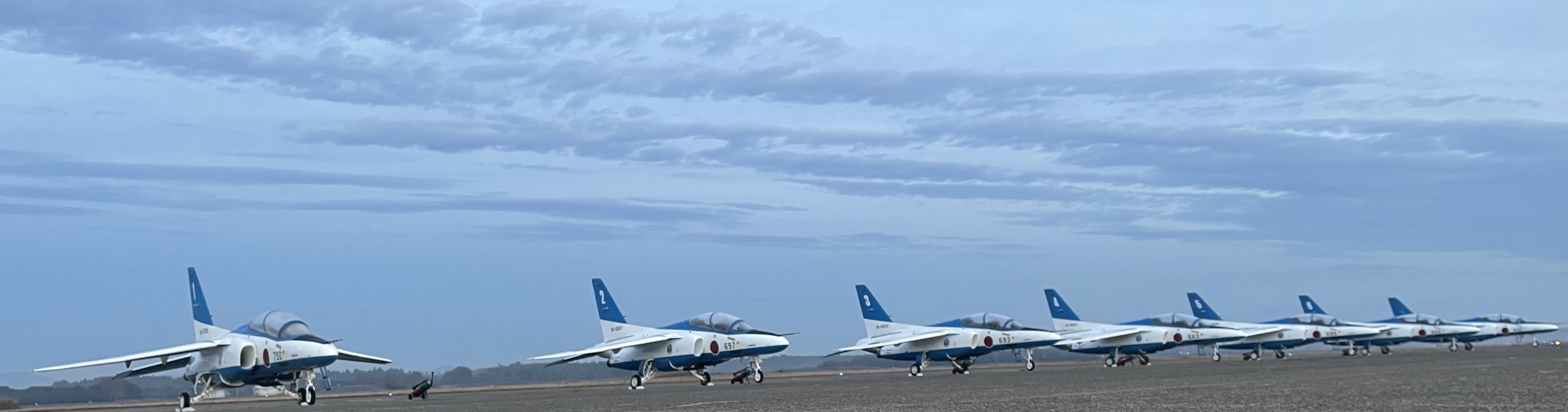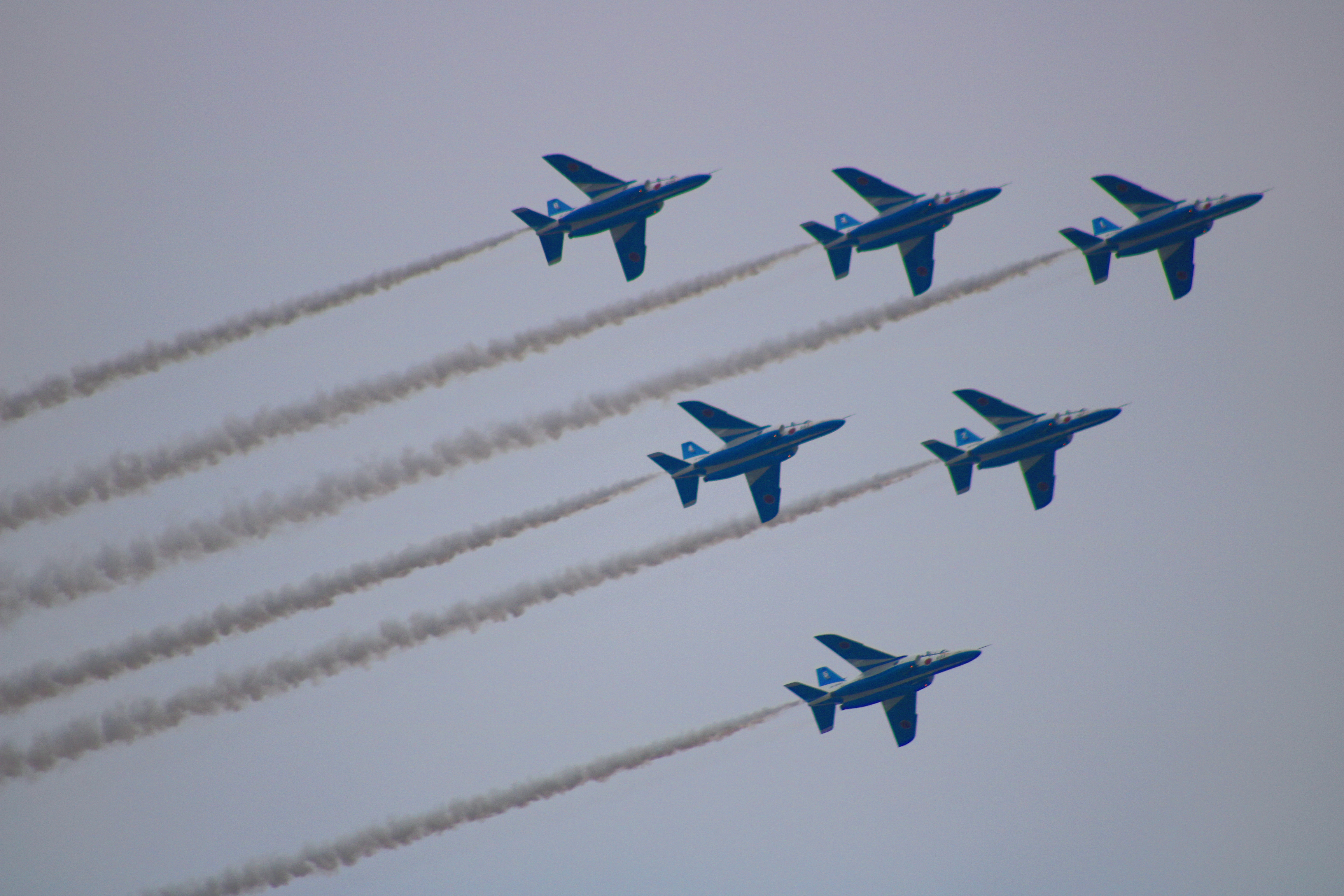 しばらく夜景を連投していたので久しぶりのブルーインパルス。最短間隔90cmで斜めになって時速800キロでかっ飛ぶ、て度胸と技術の両方が要るよねきっと。すっご!