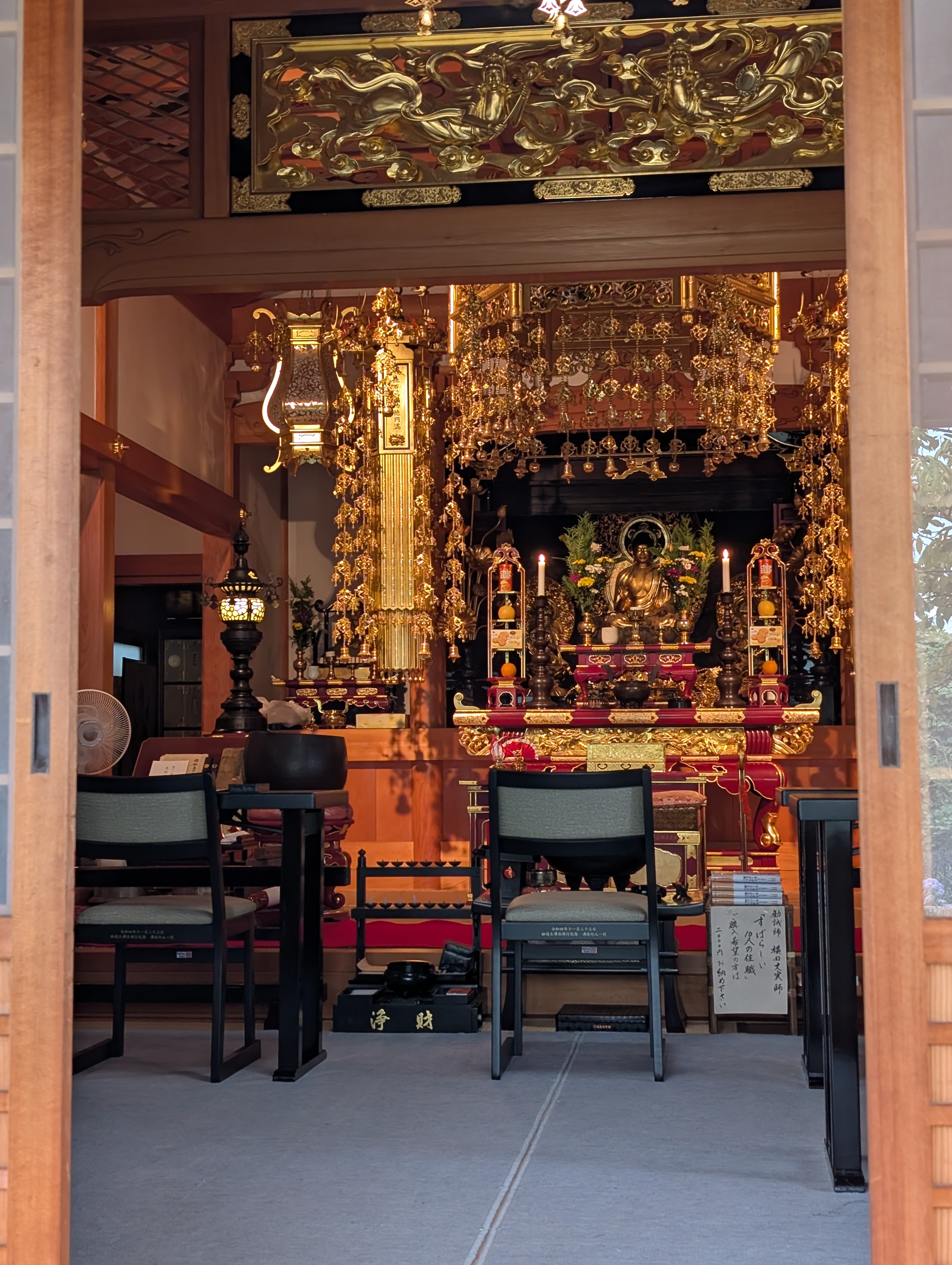 うちのお寺で#写経 会。境内には#彼岸 花。 ようやく#秋 らしい空気。お二人の参拝者と写経と念仏、#和菓子 を食べながらおしゃべり〜 #おしゃべりしたい 人たちに少しでも多く来てもらいたいけど心静かに過ごすのもいいね。