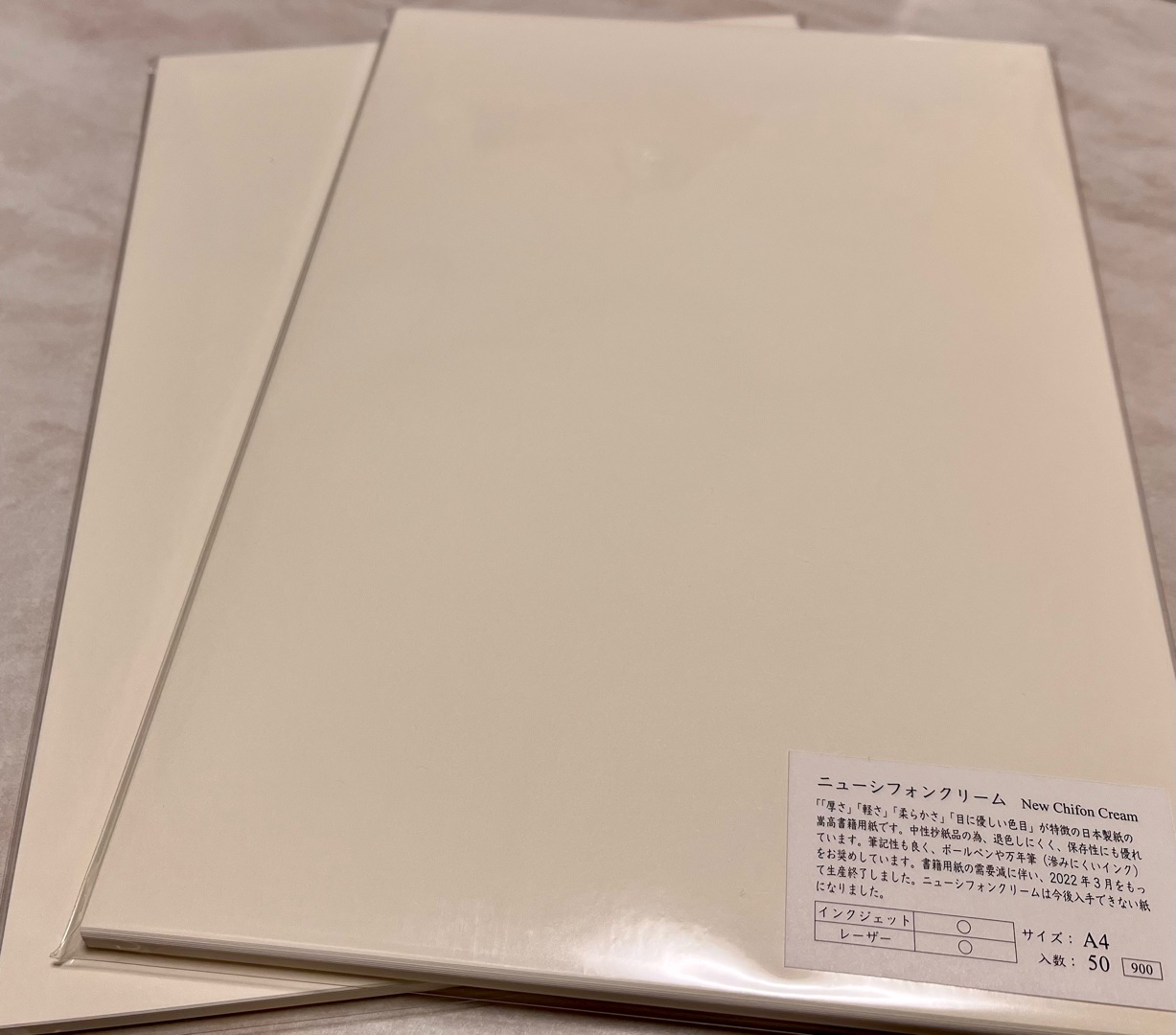 ・昨年生産終了した紙・ニューシフォンクリーム