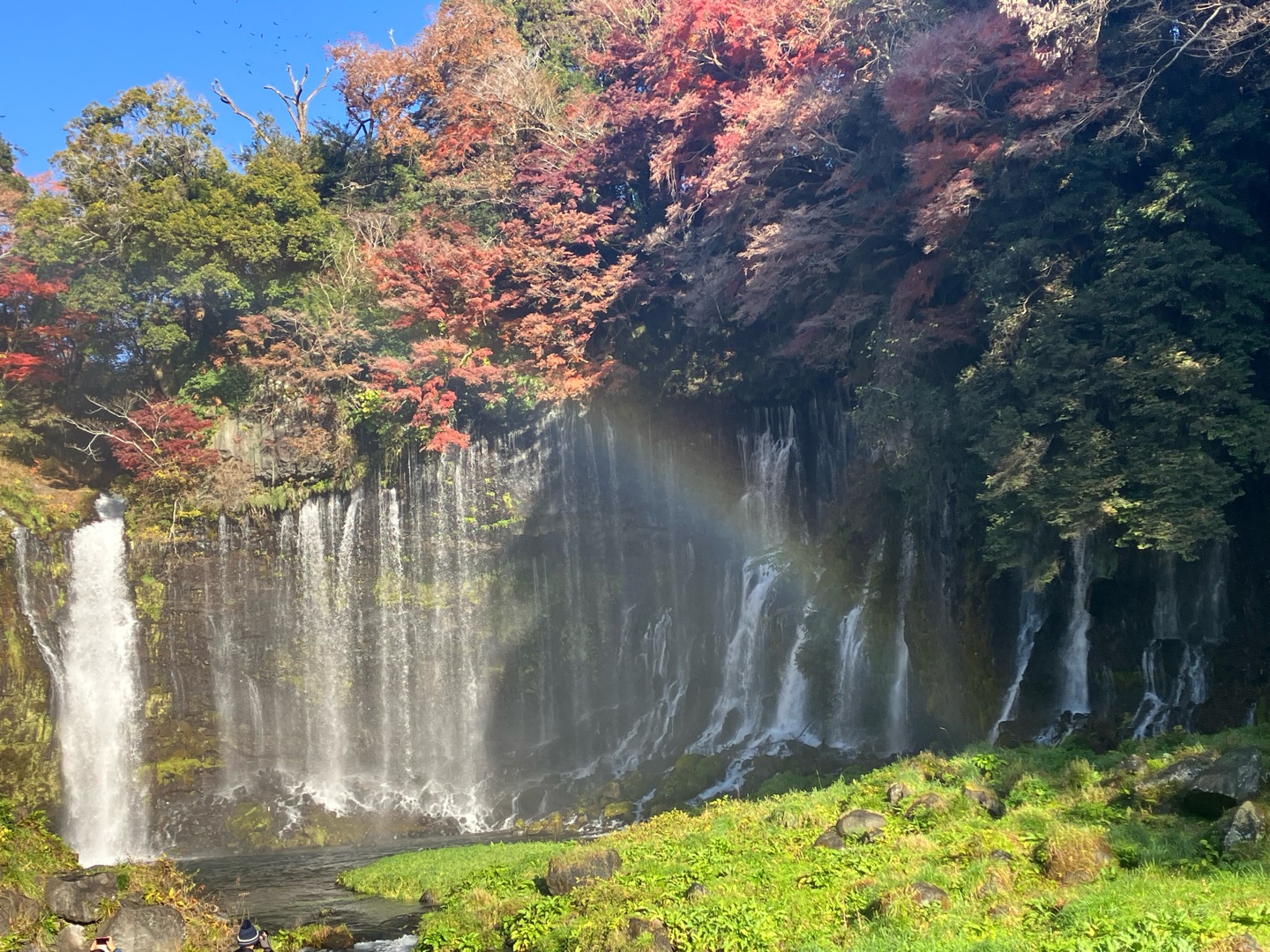 滝の水しぶきで虹🌈がでて綺麗でした[笑う]