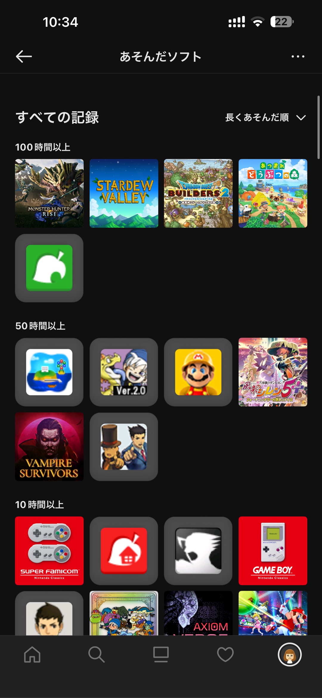 プレイ時間長い順に並べています。