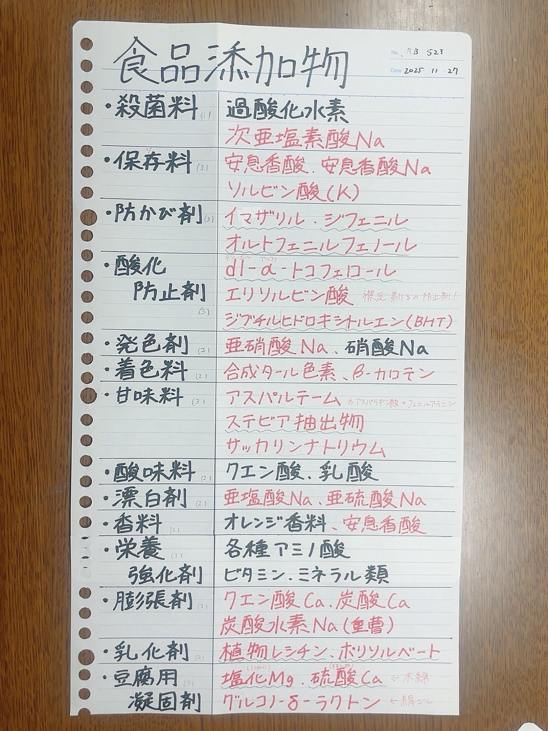 床屋さん(トコフェノール)で襟足剃ったら(エリソルビン酸)はブチ(ジブチルヒドロキシトルエン)切れるのは酸価防止剤