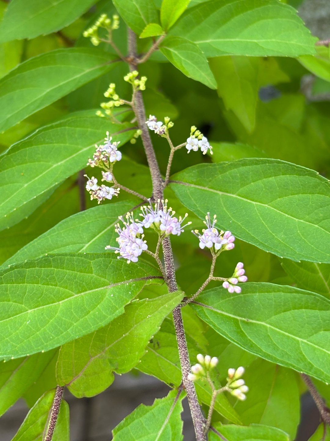 #今日の1枚 #推し花 #ムラサキシキブ 近くの公園にて。 ムラサキシキブか、コムラサキのはず🤔 実の色は紫と白があり、白い方をシロシキブとも[照れる] みなさまはどちらが好みですか? 僕は白い子が、好みです[ほっとする] して、ムラサキシキブの花言葉ですが、これは源氏物語の作者ということもあり『聡明』だそうです[ウインク] 他にも『愛され上手』なんてのもあり、こちらは主人公でもある『光源氏』からとった花言葉でしょうか[照れる] 公園の半日陰を覗いたりしたら見つけることができるかもしれませんよ〜[ウインク]