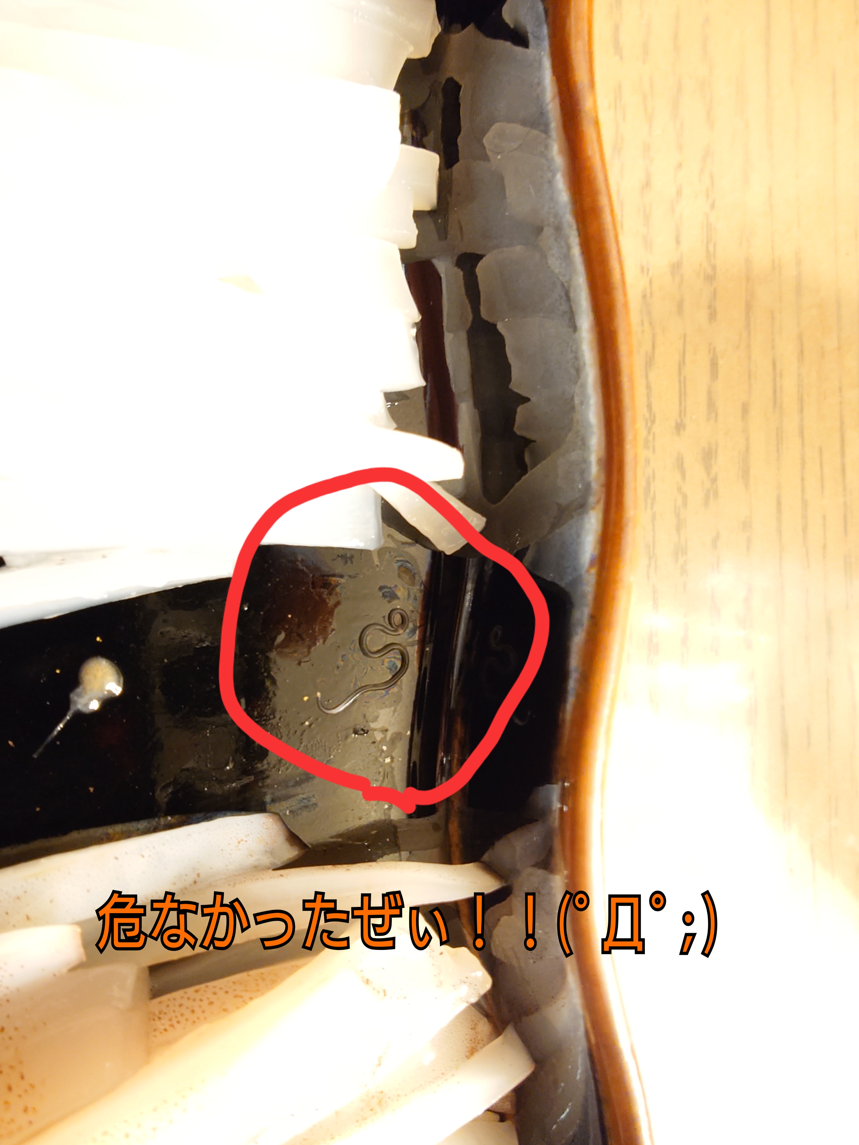 ヒラメ食ったらアニサキスに寄生された #アニサキス #ヒラメ #お刺身定食 #寄生虫