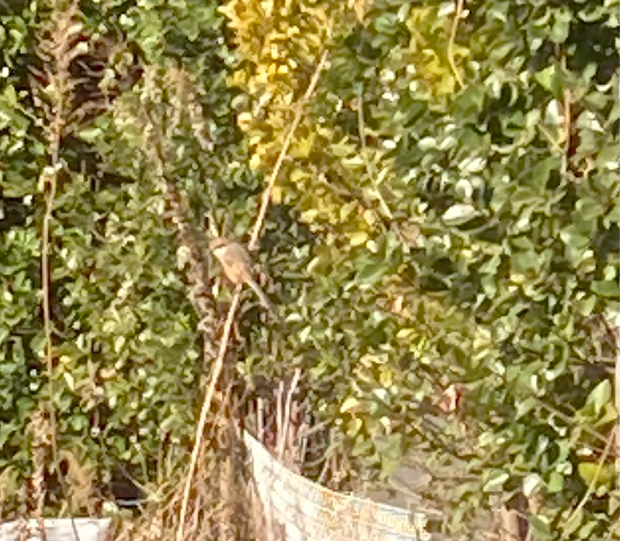 1ヶ月くらい前から、お隣の畑に生えている樹の枝や、樹の上の電線に【百舌鳥(モズ)】が良くとまっています。