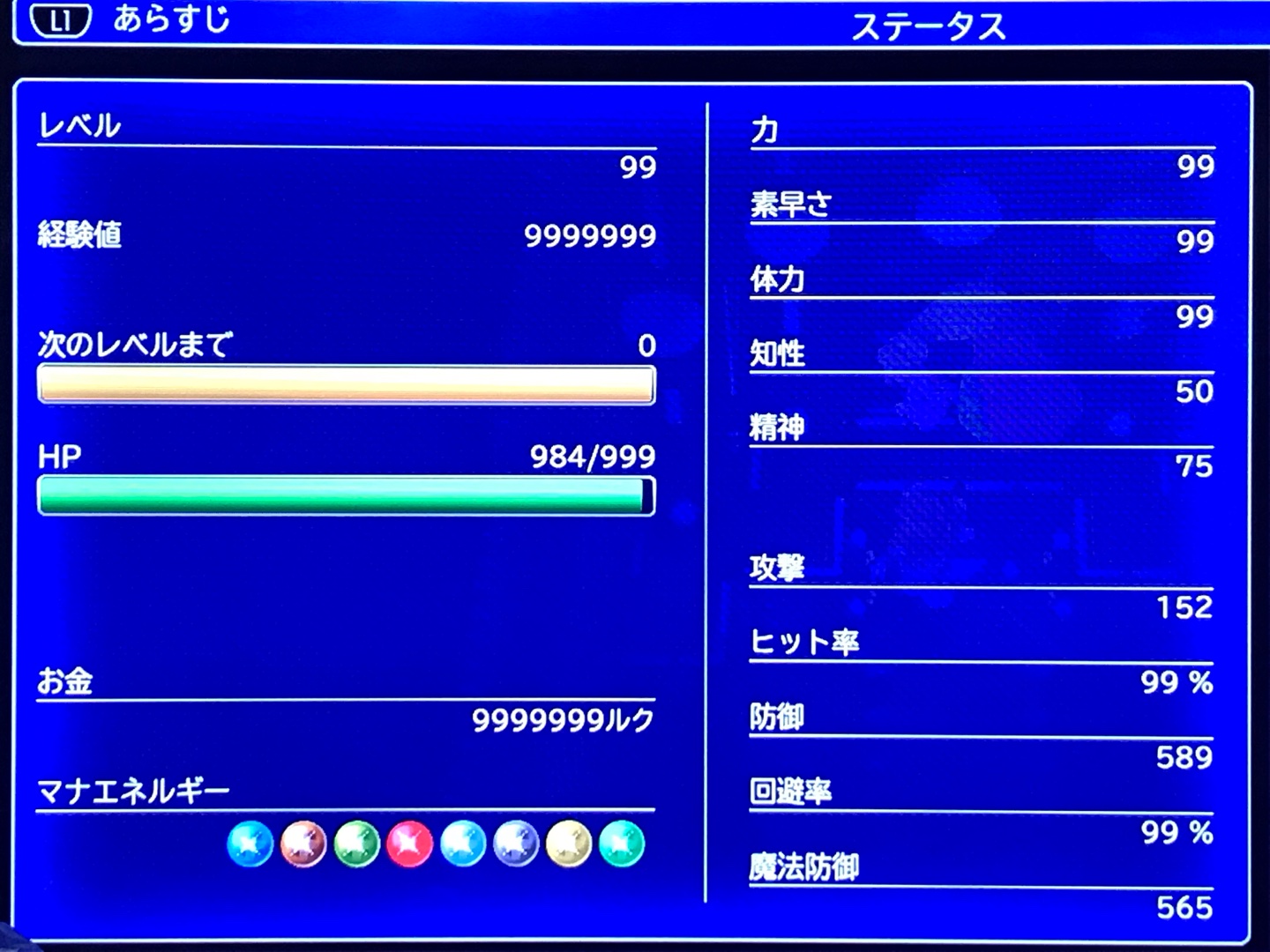 ドーピングアイテムが存在しないからステータスカンストは無しで!