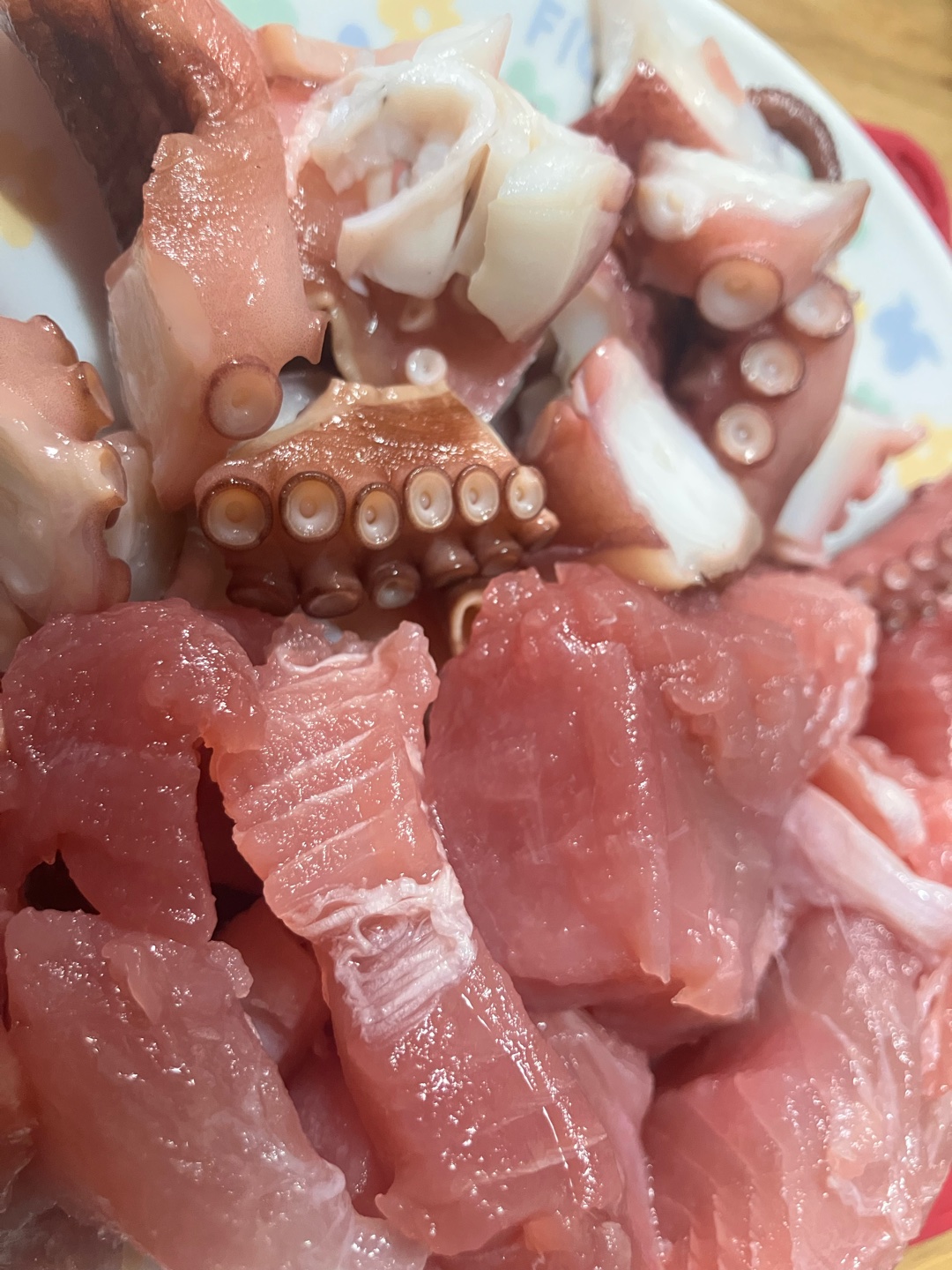 •マグロ、タコ 刺身 牡蠣醤油で🦪