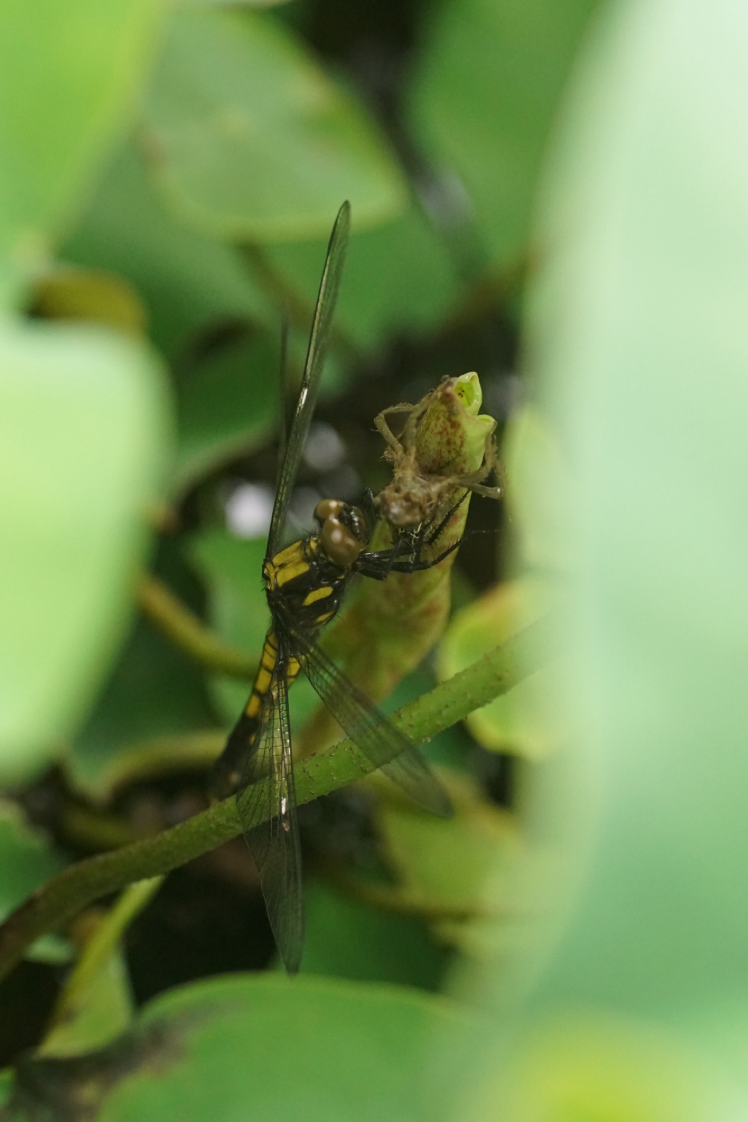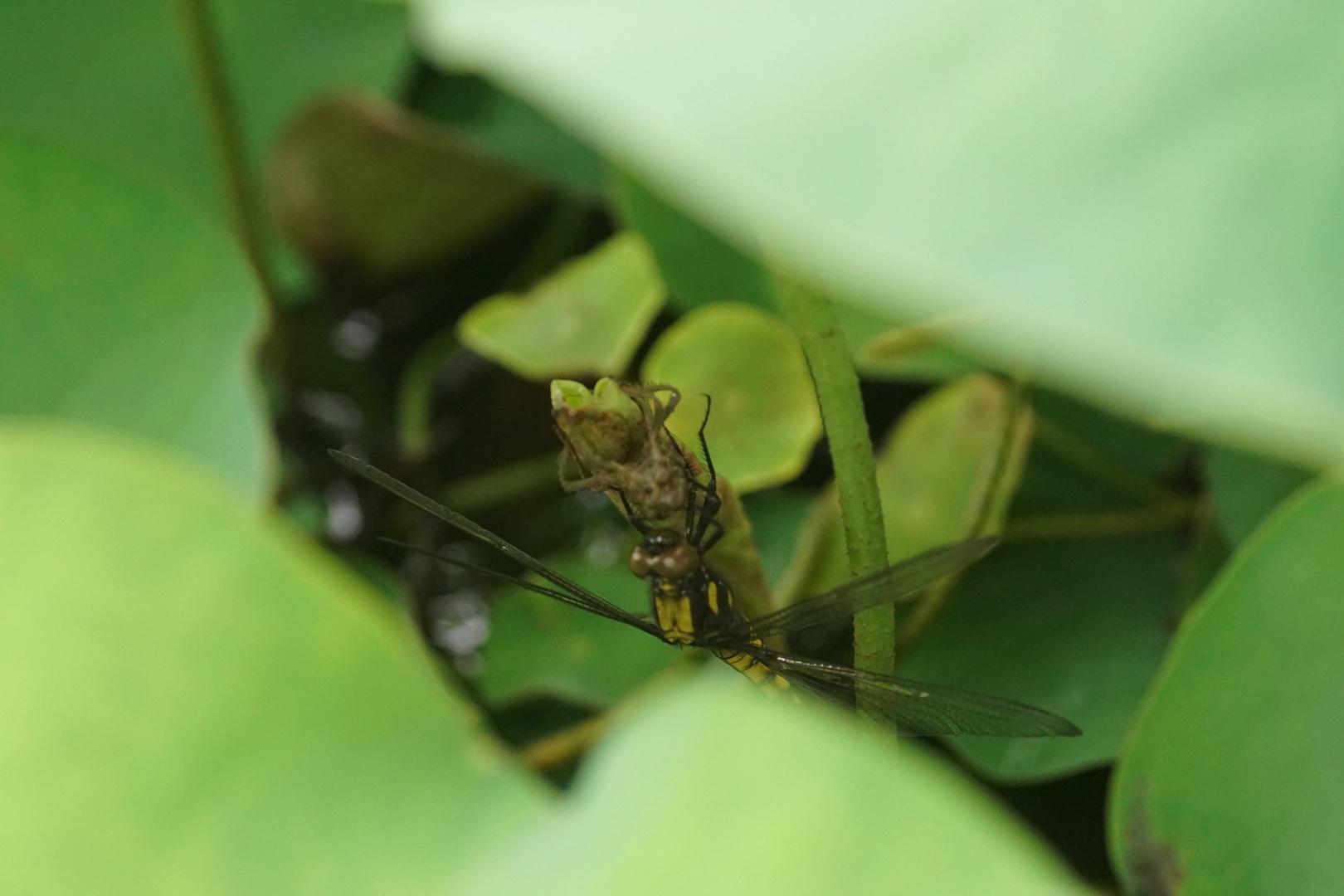 #GRAVITY日記 #羽化 #ビオトープ おはようございます☁️ 出勤前、蓮の葉の下を覗いてみたら。。。 羽化の仕上げ。 羽を乾かしていました。 鳥さんたちに見つからないように、大きな蓮の葉の下で[照れる] これには、普段ゲームばかりの長男も興味津々。 三兄弟揃ってビオトープの前で蓮の葉をのぞき込みながら、ヤゴの抜け殻とトンボの姿を興味深げに観察していました[にこやか] 田舎でも、この瞬間に出逢うのはなかなか。 みんな学校や保育園で、今朝の様子をお話しするのかな[にこやか] ちょっとテンション上がったサバ家の朝でした[大笑い]