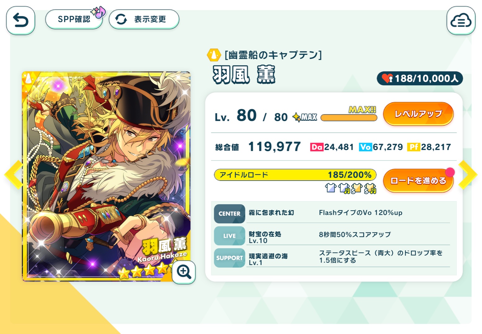 #あんスタ #UNDEAD箱イベ #羽風薫 羽風センター・アンデ箱イベ無事完凸です 低気圧のせいか体調不良で初日完凸はできなかったけど、何とか2日目で完凸完了 特効の真緒のステが所持カード的に良かったので折角なので完凸 特効205%にできたので薫くんセンターアンデ箱も駆け抜けてみた scrのカラーがアンデらしくて良いね! 総合値こそ12万には乗らなかったけどVo特化ステ SSツアーのサンドストームのFlash・danceの総合値12.3万カードには今もメチャメチャお世話になっているので、今後はFlash・Voでお世話になる予感 OYS!(トリスタVer)×181回×真緒・ママ・メルの205%で周回して イベ曲は真緒とママをサポに入れてHardを安心安全の36周回 残すは最終日まで自然回復で今回の⭐︎4ママのカードのファン活しつつ、スコアタして、Easy•Nomal•Expartのダイヤ回収して終了予定