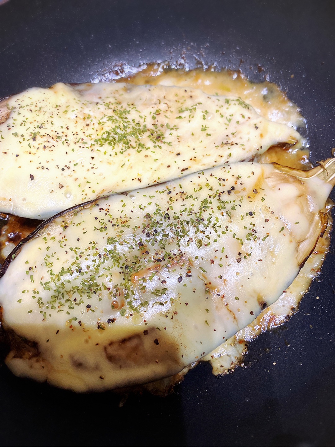 米茄子の甘辛チーズ焼き🍆🍆