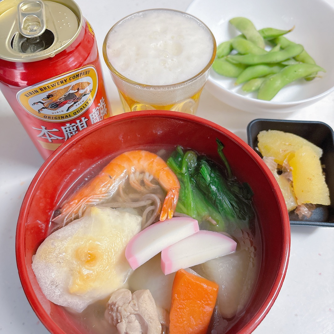 んじゃ、お雑煮そばとかで‼️🍺*(ˊᗜˋ*)و