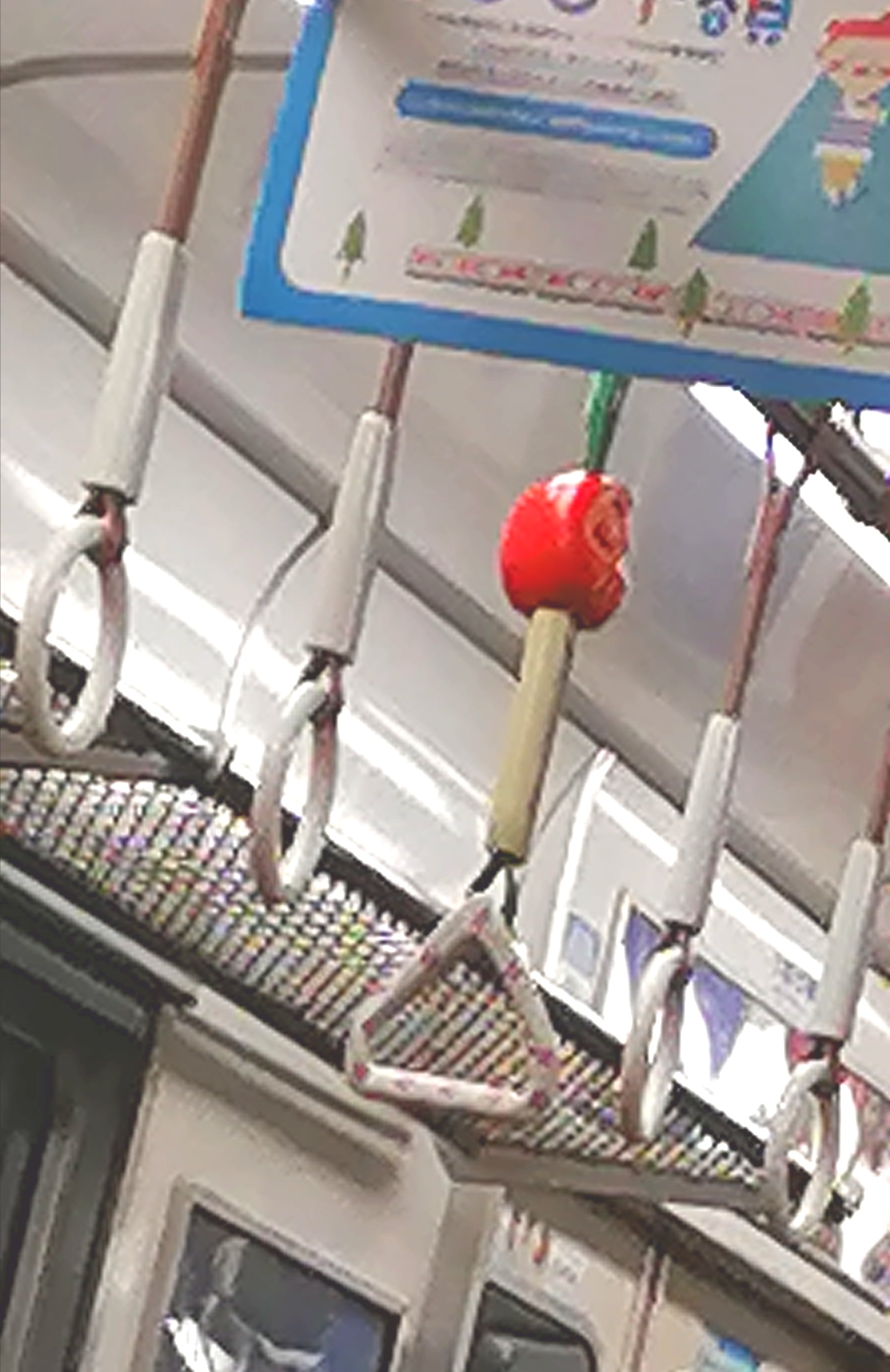 これ、107編成の1編成当たりつり革1本しかない【合格祈願のつり革だるま】