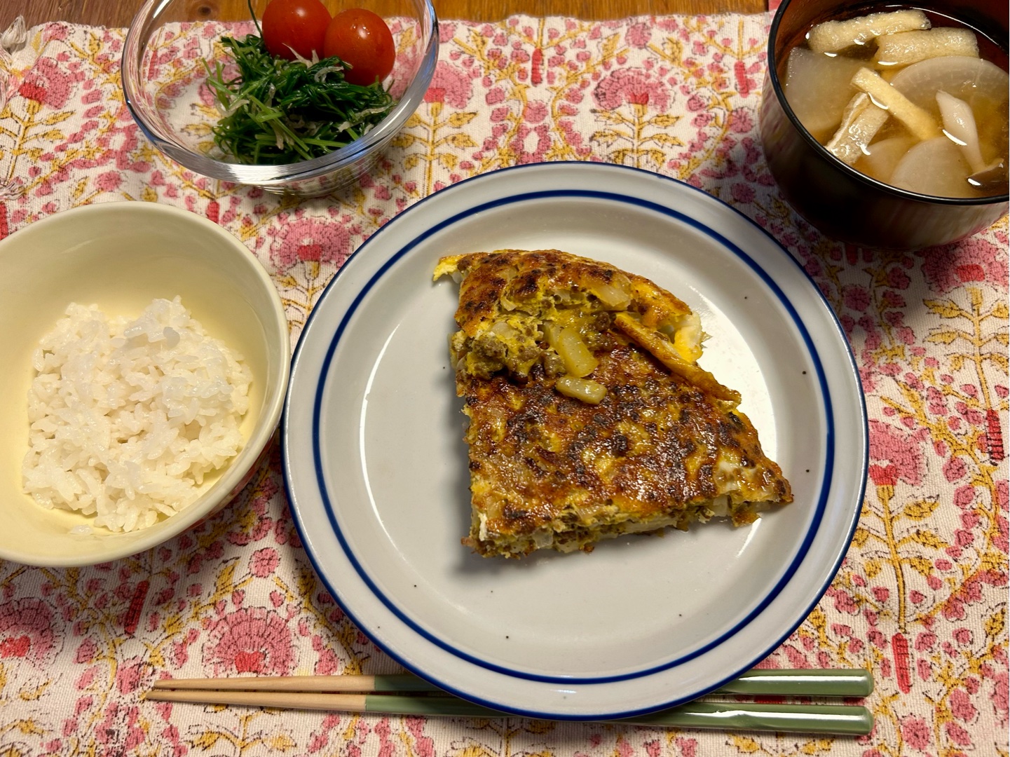 メインはジャガイモとひき肉のオムレツ🥚