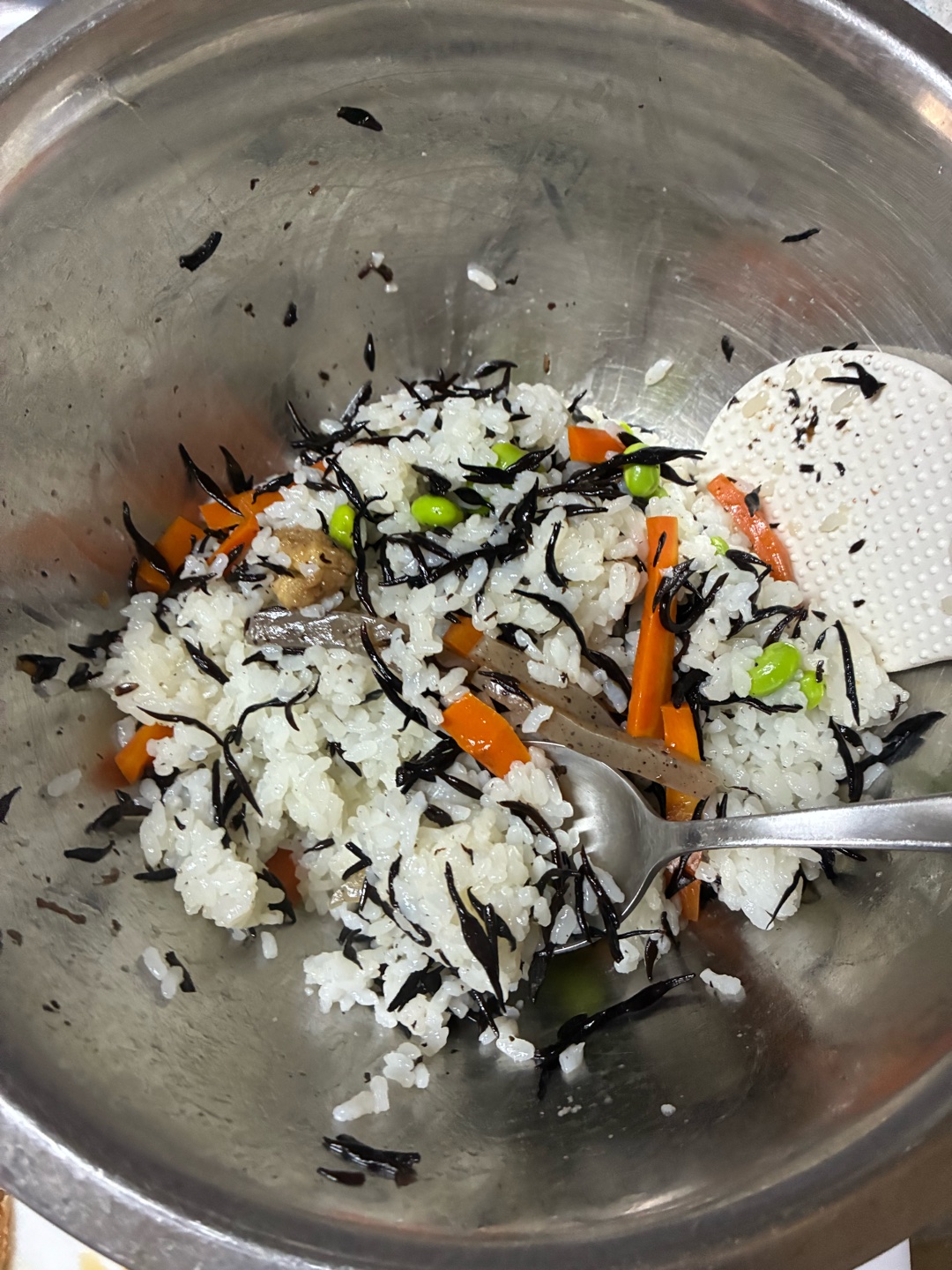 ヒジキを20分程水で戻し、水が綺麗になるまで流水で洗い水を切ります