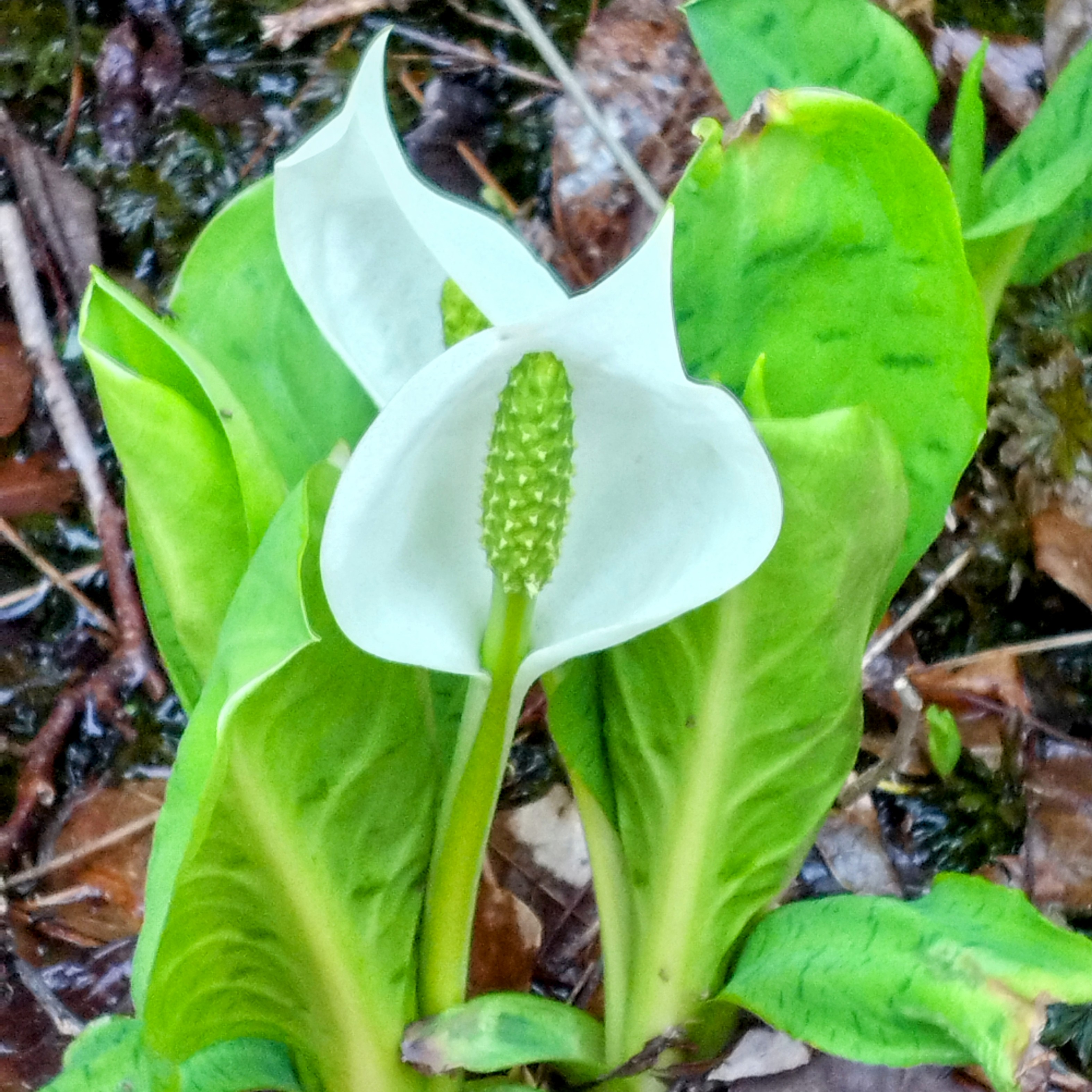 山道をグネグネと運転してたら 道端に小さなミズバショウを発見 可愛い #ミズバショウ #植物