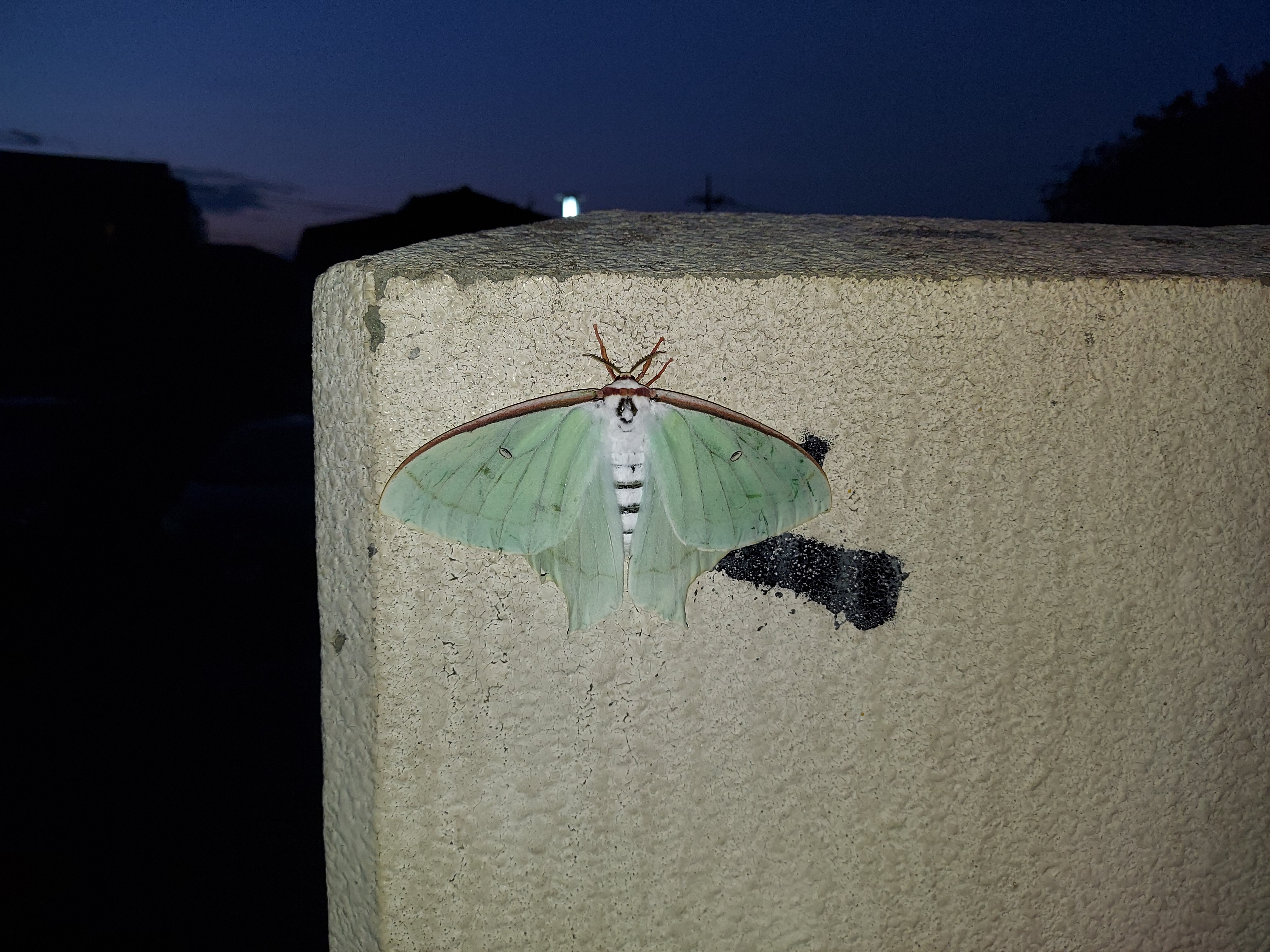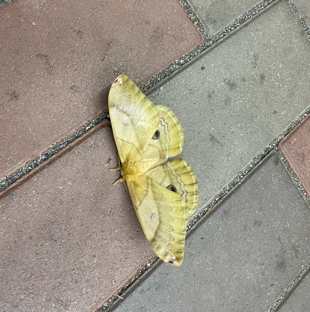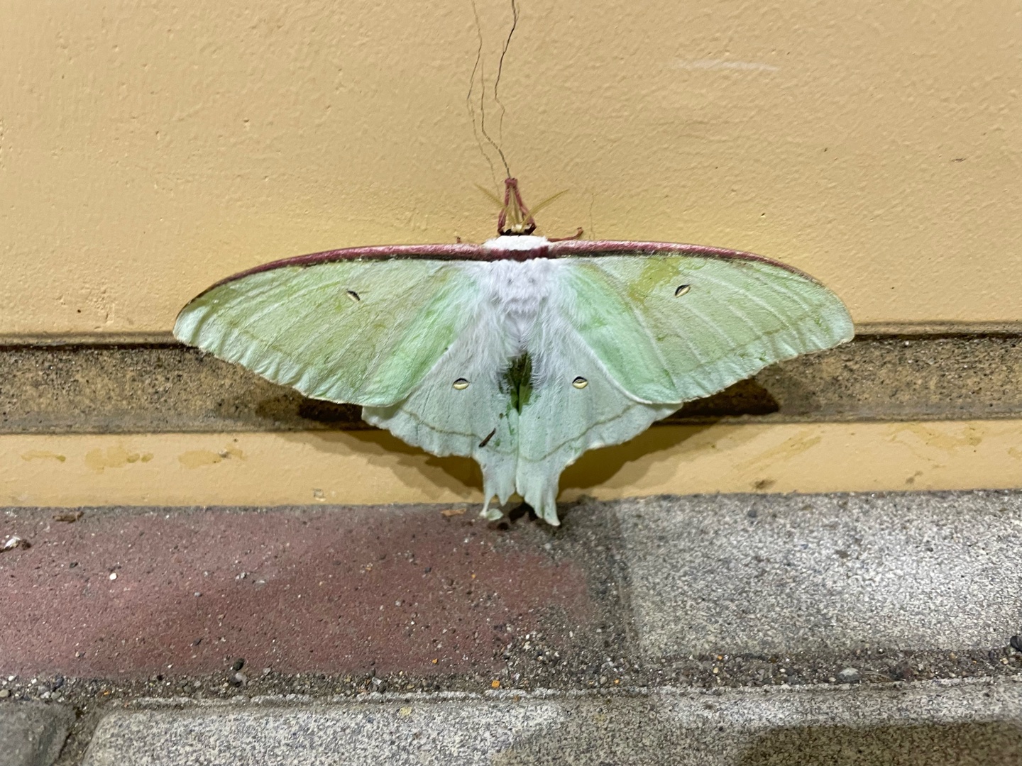 コンビニの横にオオミズアオが落ちてる。 #オオミズアオ
